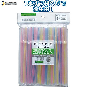 Set 100 ống hút nhựa Flexible Straw Ø5mmx190mm an toàn cho bé và gia đình nội địa Nhật Bản