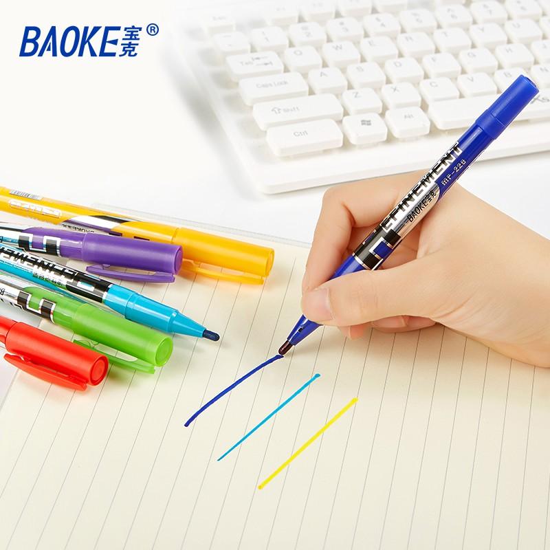 Tên sản phẩm : Bút đánh dấu 2 đầu nhỏ @ Mã sản phẩm : MP220 @Thương Hiệu :BAOKE @3 Màu : màu đen. màu xanh ,màu dỏ @ Nét Ngòi : Đầu dày :