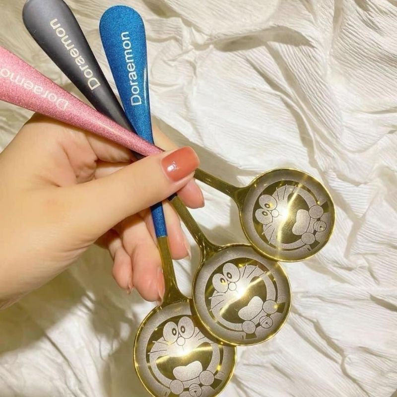 Set 4 Thìa Inox Mạ Vàng Khắc Hình Doraemon Dễ thương Sang Trọng - Hàng Loại 1- MINIIN THÌA DOREMON thìa to, dày dặn xinh lắm ạ ️ Thìa Inox Mạ Vàng Cán Dài Nhiều