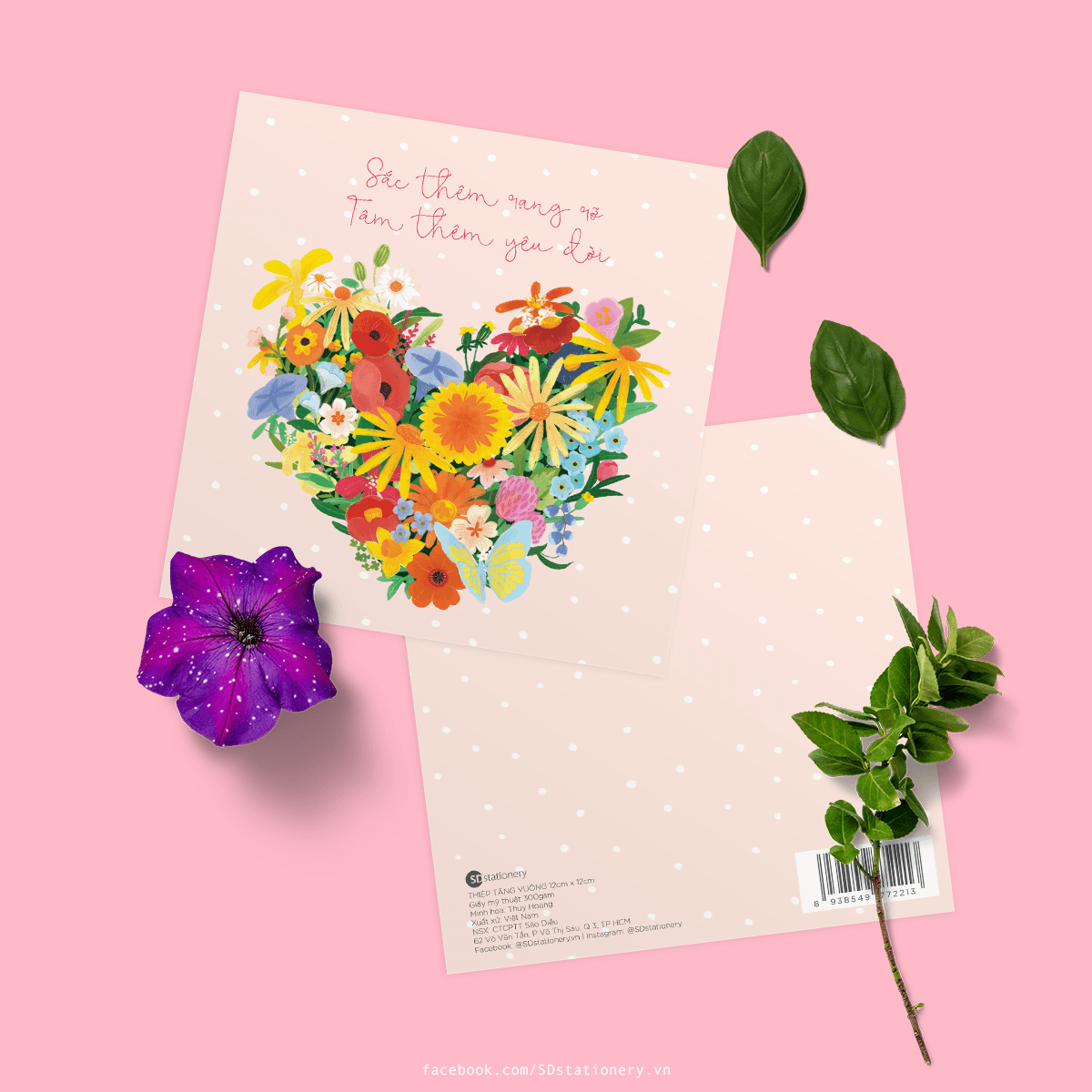 ✨Set 5 thiệp mừng phụ nữ 8/3, 20/10 cảm ơn, động viên, truyền cảm hứng SDstationery Sắc Thắm 12x12 minh họa tươi tắn bắt mắt