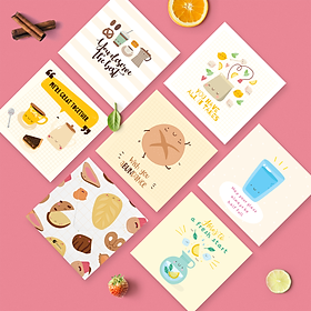 ✨Set 6 thiệp tặng bạn bè, chúc mừng, chúc may mắn, động viên SDstationery TASTY TREAT 12x12 minh họa dễ thương cute cho tâm hồn ăn uống