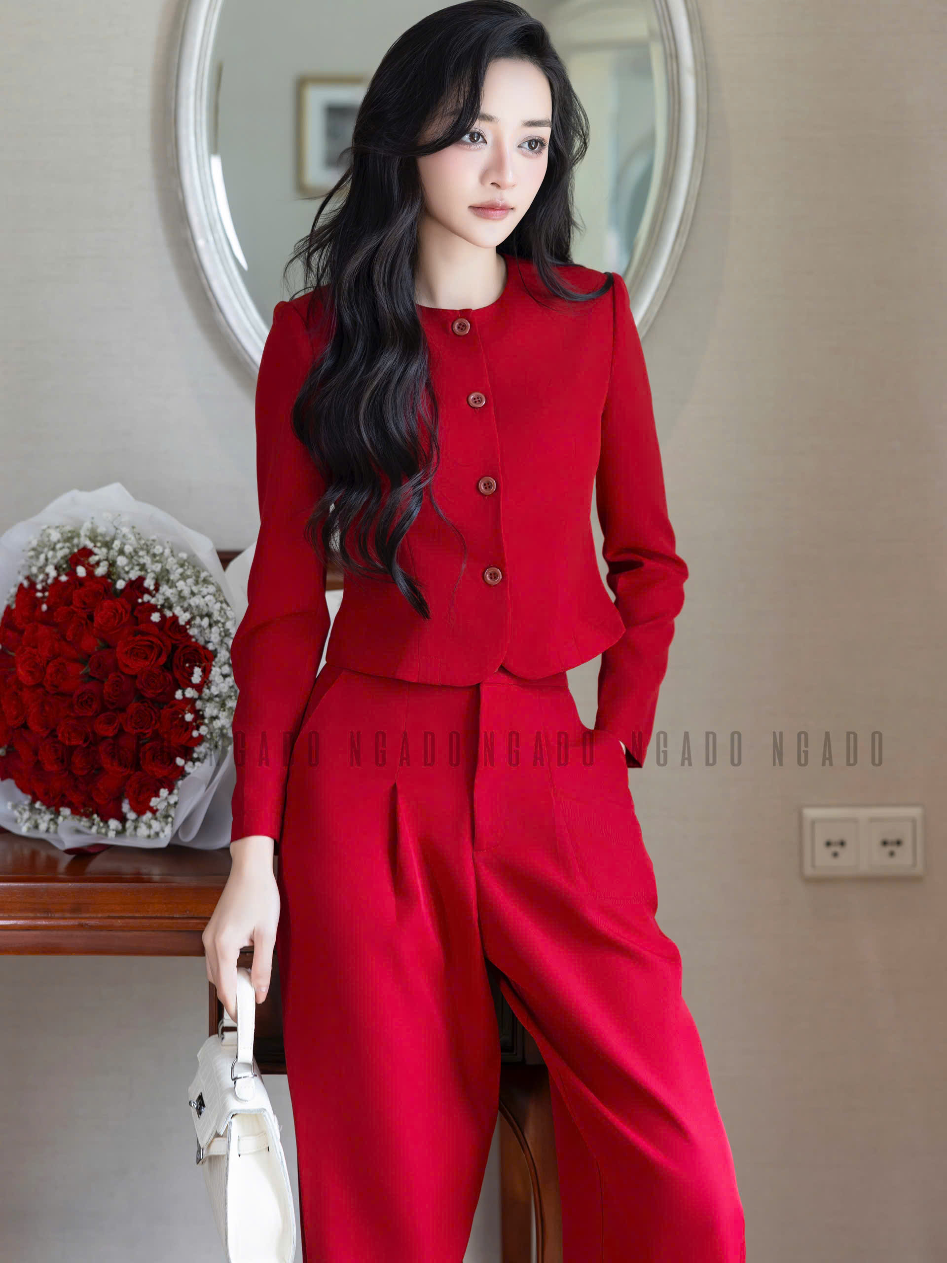 ✨Set áo quần đỏ đô cổ tròn NGADO , set áo quần dài , set công sở , dạo phố