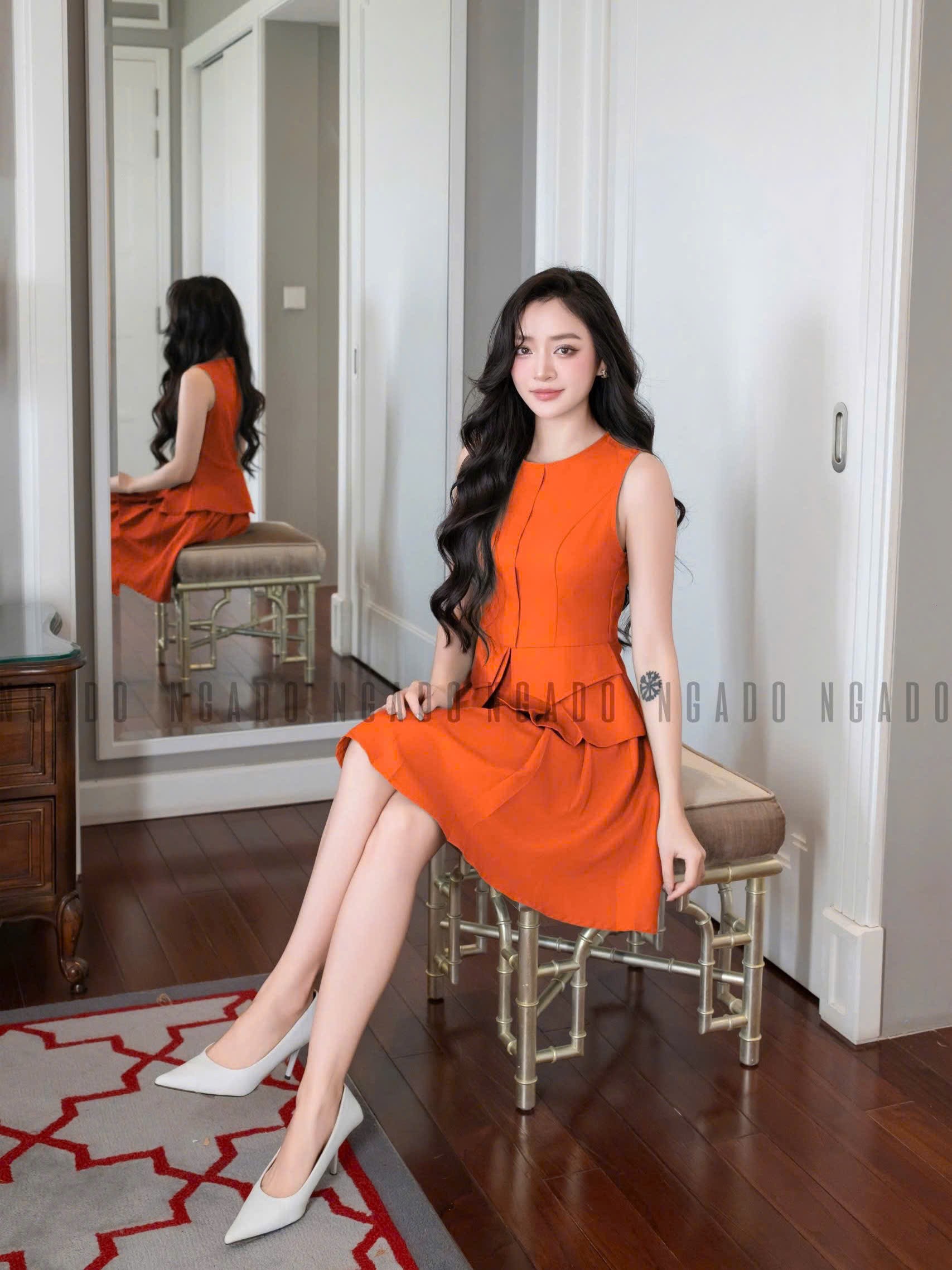 Mua tại Tiktokღ THÔNG TIN SẢN PHẨM: Tên sản phẩm: Set áo váy cam xếp ly Thông số size: S, M, L, XL Chất liệu: gân ý Chi tiết sản phẩm: không lót, không túi • Thương hiệu: NGADO • Xuất xứ: Việt Nam
