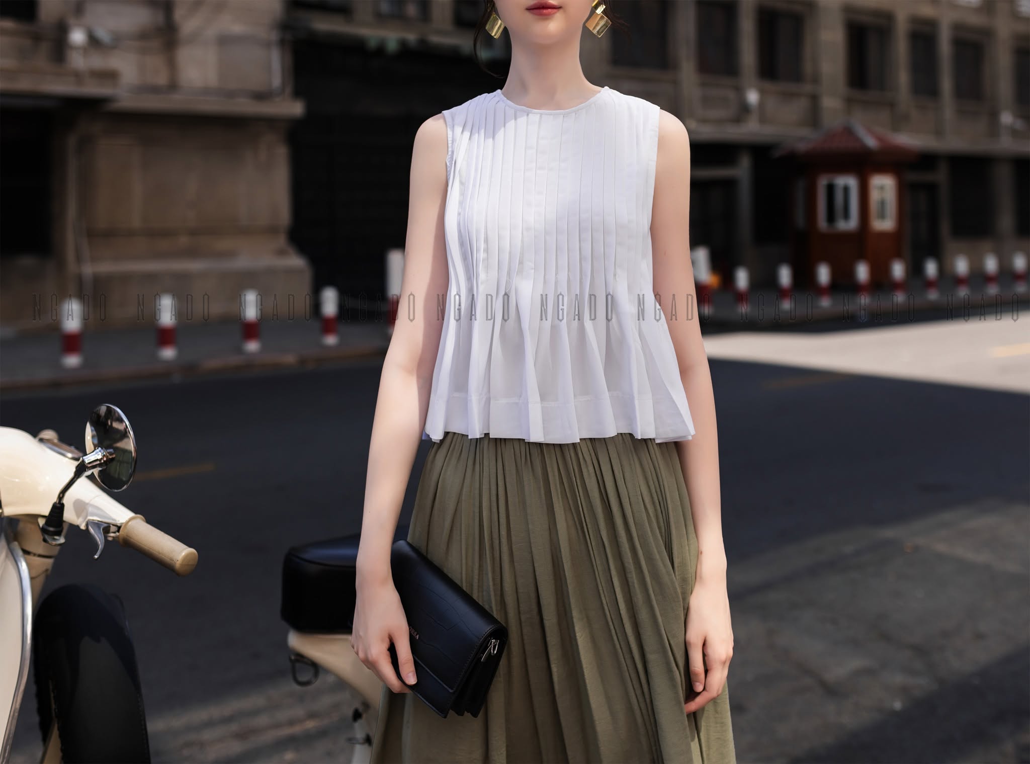 ✨Set áo váy trắng xếp ly NGADO , set áo kèm váy , set áo váy kiểu Nữ