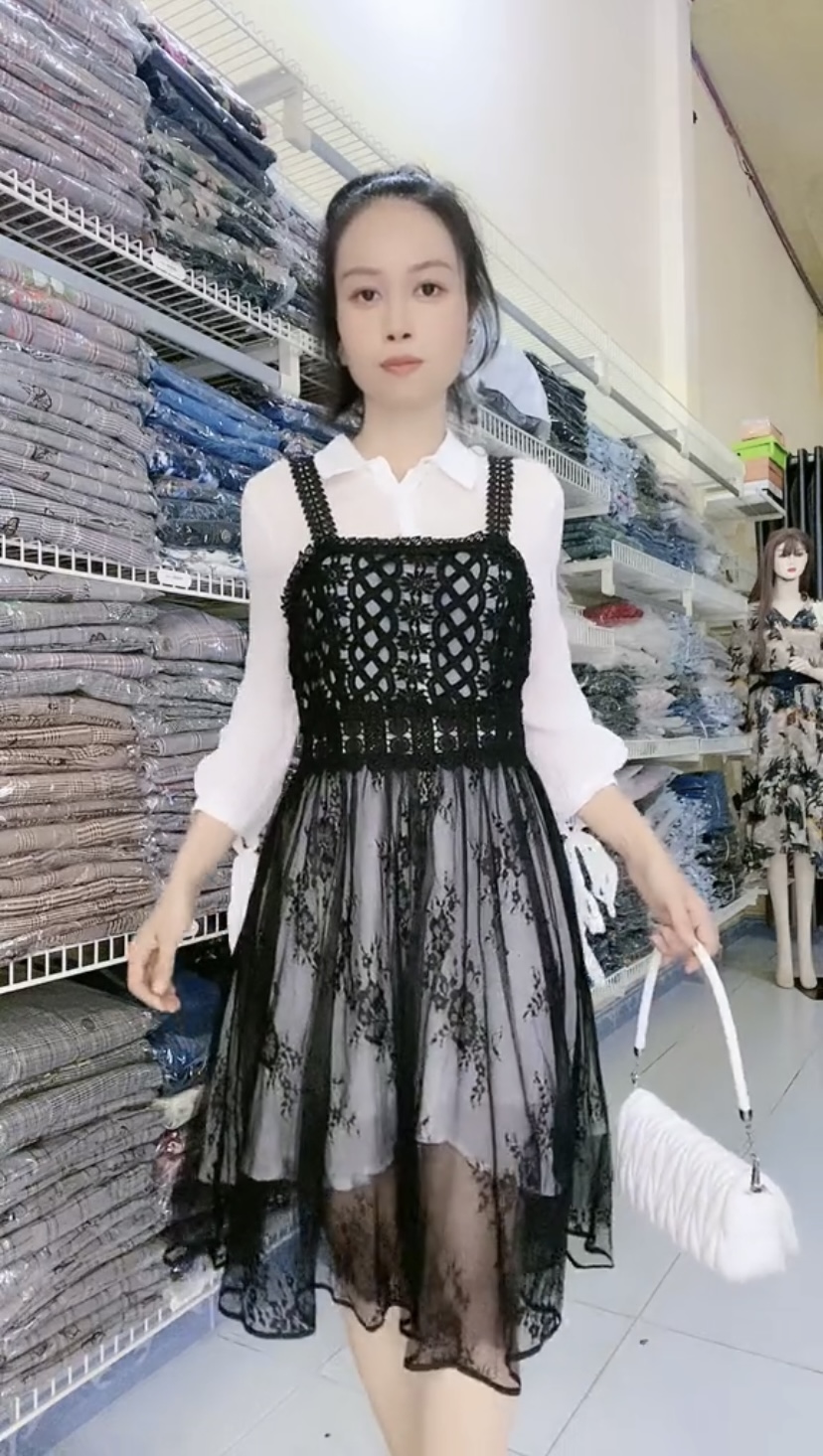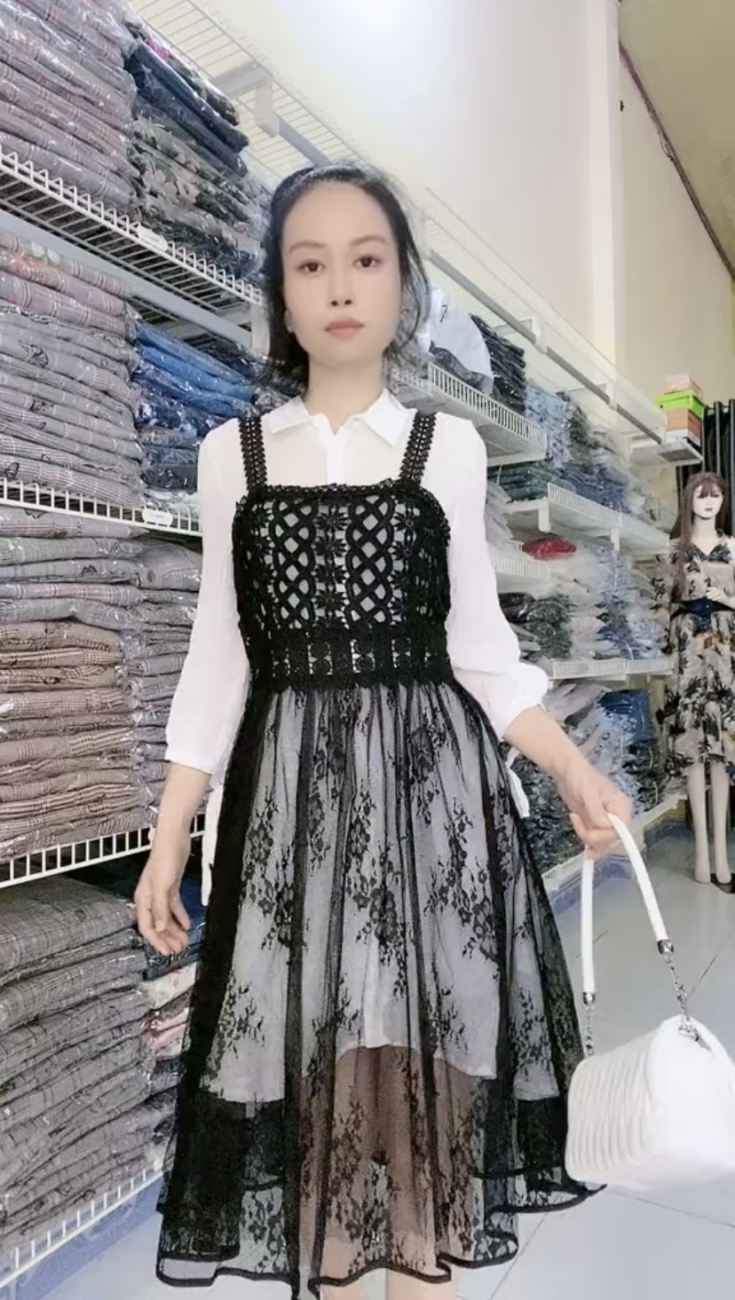 Đầm yếm và áo form dài nguyên set Mã: SDLCG001 Màu: Trắng + Đen Chất liệu: Linen, sợi bông thiên nhiên mịn mát, bền Họa tiết: Thêu