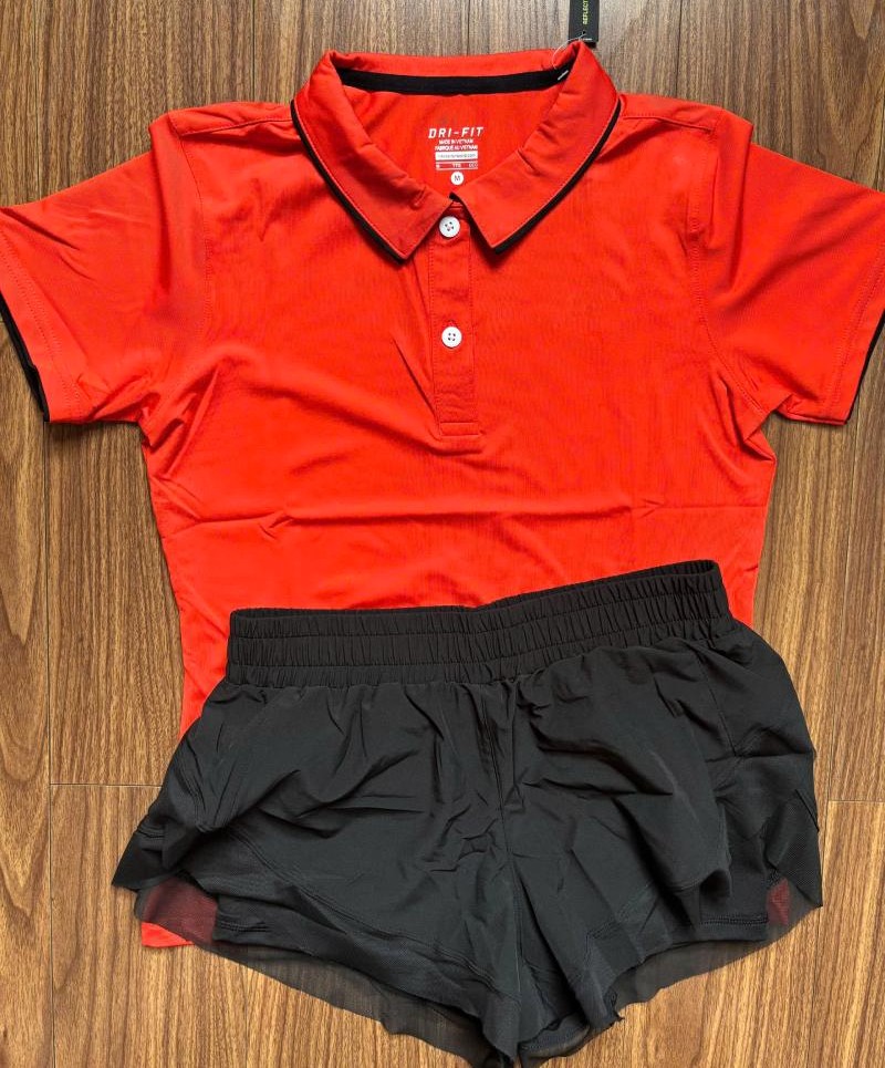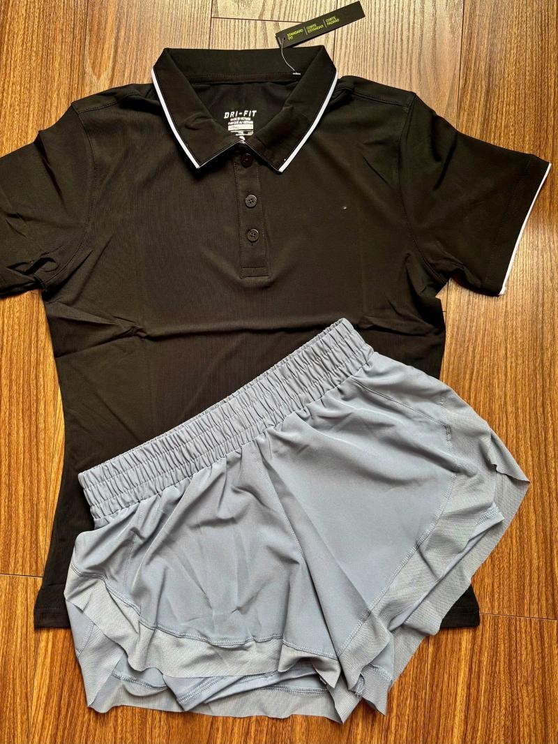- Quần đùi hàng quảng châu cao cấp Quần có 2 lớp: lớp ngoài là vải polyester, bên trong là lớp thun lạnh co giãn 4 chiều có túi bên hông đựng đồ lặt vặt Quần lưng cao giúp chị em hack vòng 2 cực đỉnh, lên dáng siêu đẹp Quần có 3 màu: Đen, Xanh, Tím 2.Áo có cổ nữ, golf, tennis,chất thun mịn, mát co giãn, chất dày dặn, hình thật Áo thể thao nữ golf, tennis, cầu lông nữ xinh phom chất chuẩn đẹp Thun co giãn 4 chiều Size: M, L, XL, 2XL Màu: Đen, Xanh dạ quang, Đỏ, Cam