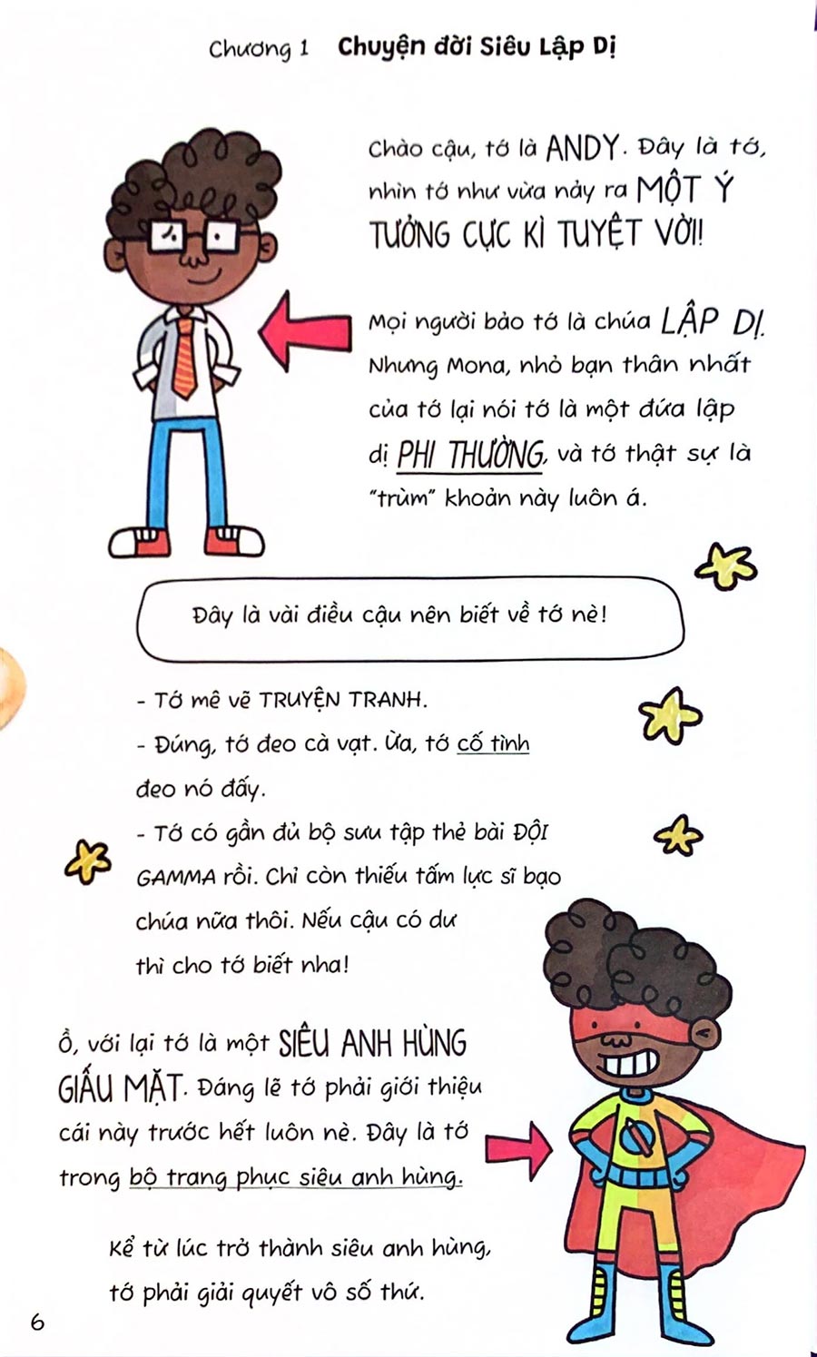 • Andy là một cậu học trò nhút nhát nhưng mê vẽ vời. Trong chuyến dã ngoại với lớp đến Đảo Sinh Tồn, tình cờ cây bút chì của cậu bị nhiễm phóng xạ và có siêu năng lực “vẽ thứ gì là thứ đó biến thành thật”. Cùng với cô bạn Mona thông minh tuyệt vời và cậu em trai Oscar nghịch ngợm, Andy sẽ tiêu diệt những tên siêu tội phạm và bảo vệ thế giới ra sao? Mời bạn tìm đọc trọn bộ Siêu Lập Dị để tham gia vào những cuộc phiêu lưu vô cùng hấp dẫn và hài hước của cậu bé Andy nhé!