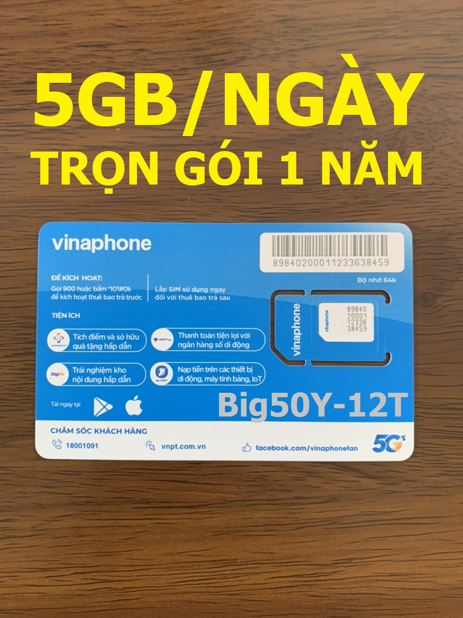 Sim 4G vinaphone Trọn gói 1 năm, không nạp tiền hàng tháng Nhận sim là có Khuyến mãi, không phải nạp tiền Khuyến mãi 12 tháng như sau: + Có 2GB/ngày (12 tháng) + Miễn