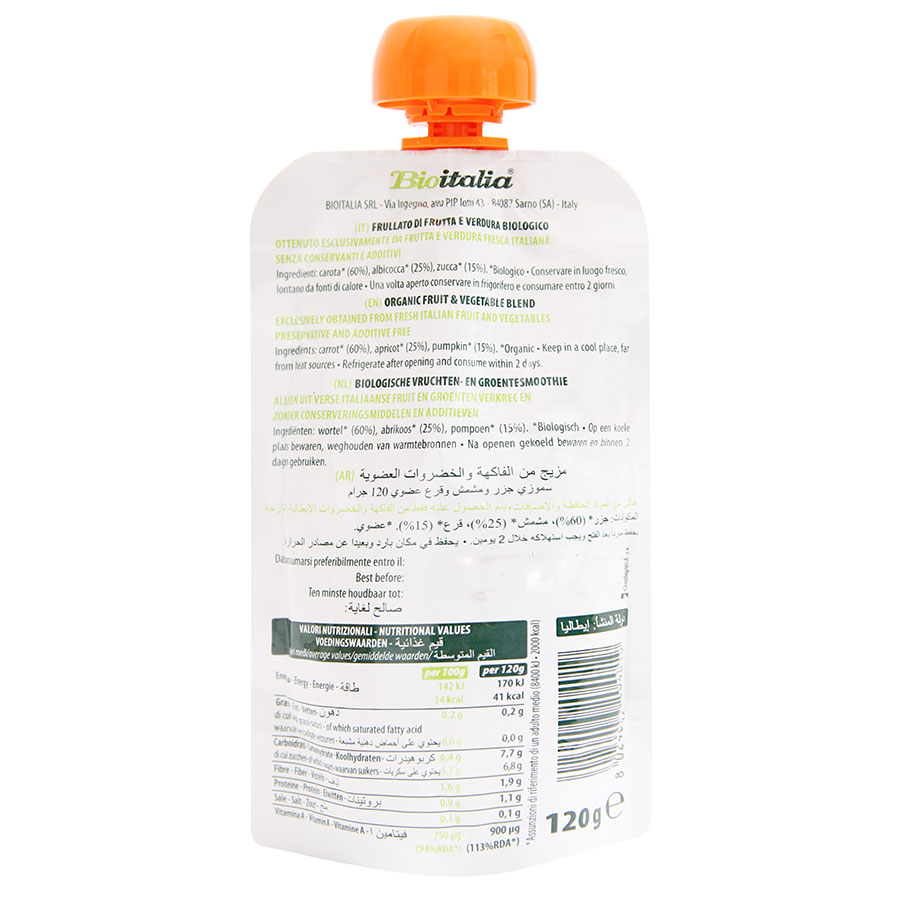 Mua tại Tiktok- Hỗn Hợp Mơ, Cà Rốt Và Bí Đỏ Hữu Cơ BioItalia (120g) là loại sinh tố trái cây giàu Vitamin với thành phần 100% Organic.