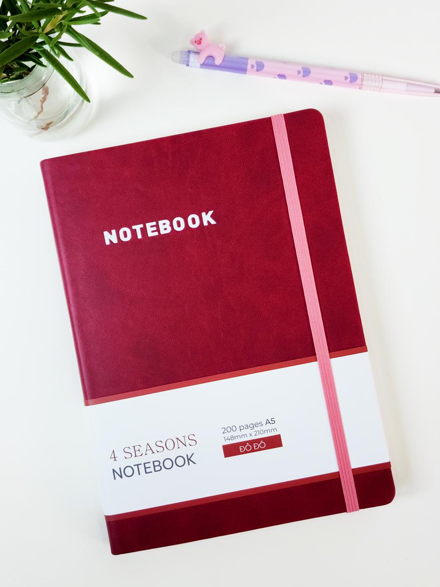 Sổ Bìa Da A5 - Kẻ Ngang 200 Trang 80gsm - 4 Seasons - The Sun 01 - Màu Đỏ Đô - Sản phẩm sử dụng loại giấy láng, mịn, không lóa mắt, phù hợp
