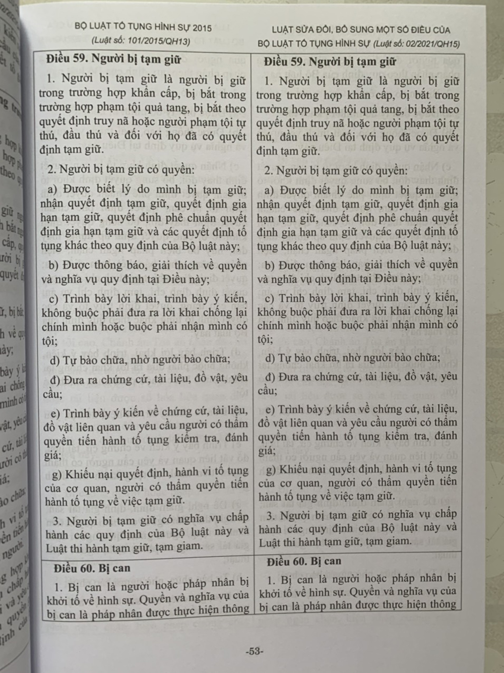 So Sánh – Đối Chiếu Bộ Luật Tố Tụng Hình Sự Năm 2015 (Sửa Đổi, Bổ Sung Năm 2021)