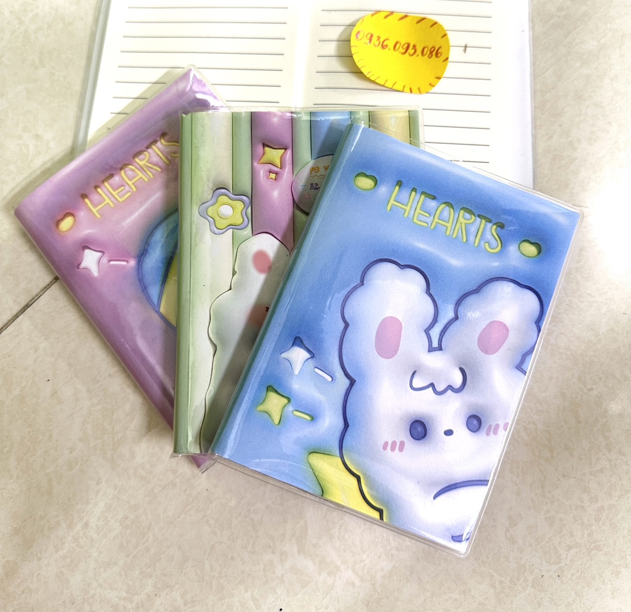 -Sổ tay thiết kế bìa dẻo trong bọc bên ngoài giúp hạn chế thấm nước và dễ lau chù -Sổ tay có 140 trang thiết kế dòng kẻ ngang tiện lợi, giấy dày định lượng 80gsm -Kích thước sổ : 9.5*13cm cỡ khổ A6 dễ mang đi, bỏ cặp tiện lợi -Bìa sổ nhiều hình dễ thương, nhiều màu sắc, shop giao ngẫu nhiên tùy theo từng đợt nhập hàng về -Có thể làm quà tặng, dùng để ghi chú, -Số được làm từ giấy chất lượng cao,độ bền cao, bề mặt giấy mềm mượt, viết êm.