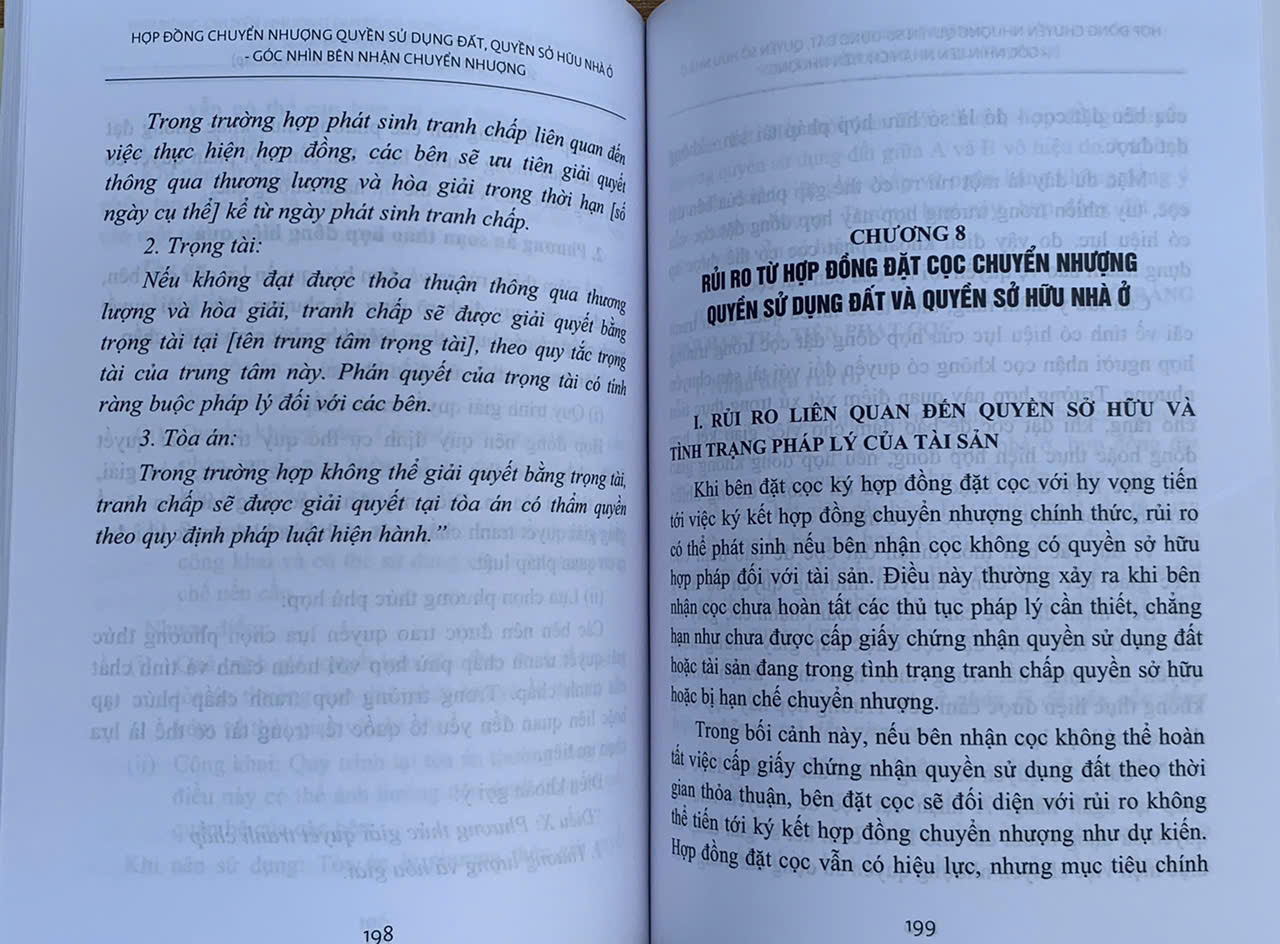 Trong bối cảnh thị trường bất động sản ngày càng phức tạp và biến động, việc chuyển nhượng quyền sử dụng đất và quyền sở hữu nhà ở luôn tiềm ẩn nhiều rủi ro pháp lý. Sự hiểu biết sâu sắc về các quy định pháp luật và khả năng soạn thảo hợp đồng chính xác là yếu tố then chốt để bảo vệ quyền lợi của các bên tham gia, đồng thời đảm bảo rằng giao dịch diễn ra suôn sẻ và hợp pháp. Một hợp đồng được soạn thảo kỹ lưỡng không chỉ là một công cụ pháp lý quan trọng mà còn là nền tảng để ngăn ngừa rủi ro và bảo vệ quyền lợi của người nhận chuyển nhượng. n sự mỗi nối thành sign tôn ba Cuốn sách này là một phần trong tuyển tập “Soạn thảo hợp đồng hiệu quả”, mỗi tập sẽ phân tích sâu về một loại hợp đồng cụ thể nhằm mang lại cho người đọc cái nhìn toàn diện và chi tiết nhất. Tập đầu tiên, với tiêu đề “Hợp đồng chuyển nhượng quyền sử dụng đất, quyền sở hữu nhà ở - góc nhìn bên nhận chuyển nhượng”, đi sâu vào việc nhận diện và phân tích các rủi ro pháp lý phổ biến trong quá trình chuyển nhượng. Thông qua việc cung cấp các giải pháp soạn thảo cụ thế, cuốn sách hướng đến việc giúp người đọc phòng ngừa rủi ro và bảo vệ quyền lợi của mình một cách hiệu quả.