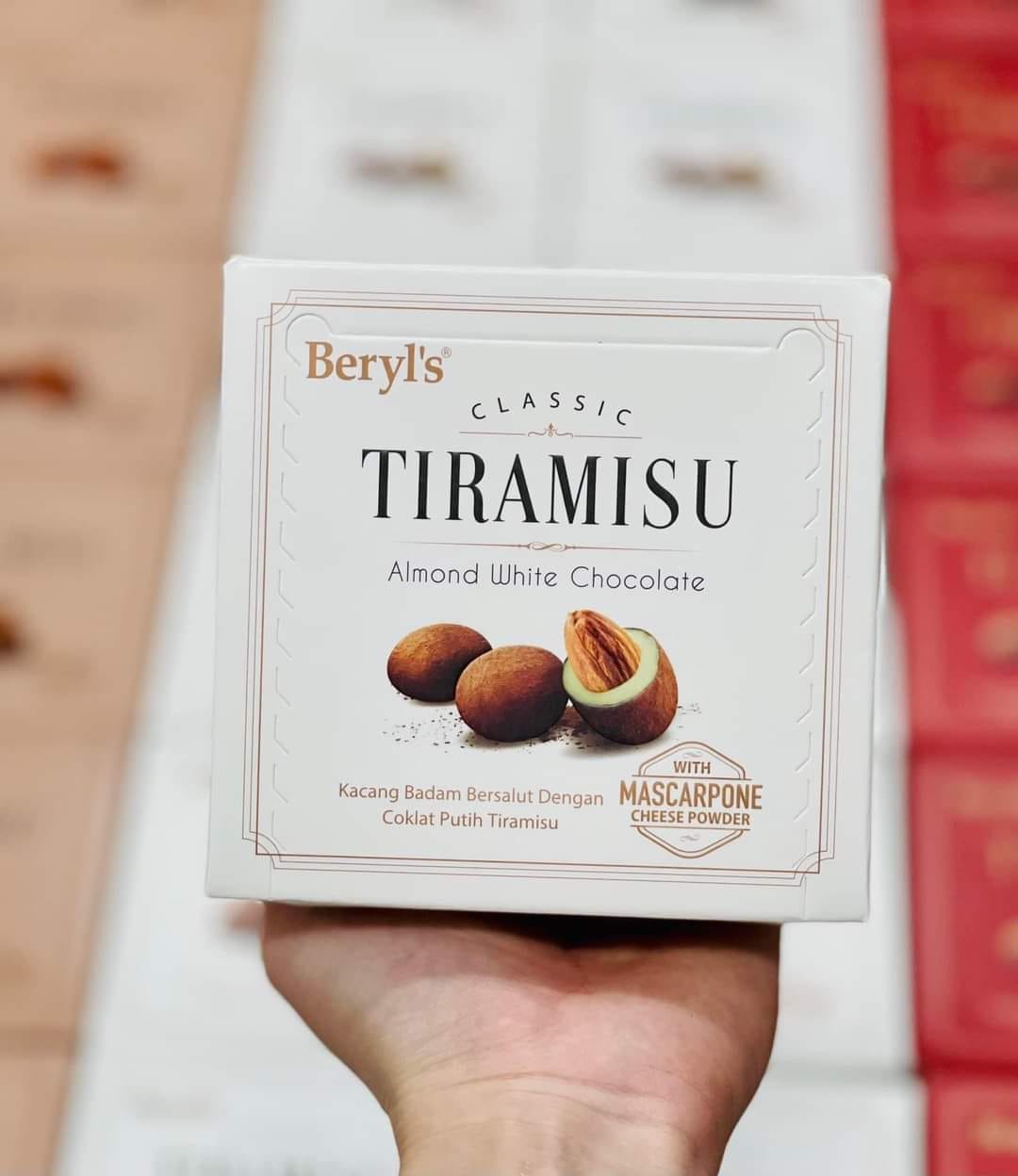 Socola Hạnh Nhân Tiramisu Beryl's Xuất xứ: Malaysia Thương hiệu: Beryl's Hsd: 18 tháng kể từ ngày sản xuất ️Thành phần: Đường, sữa bột nguyên kem, hạt hạnh nhân, ca cao miếng, dầu thực vật,