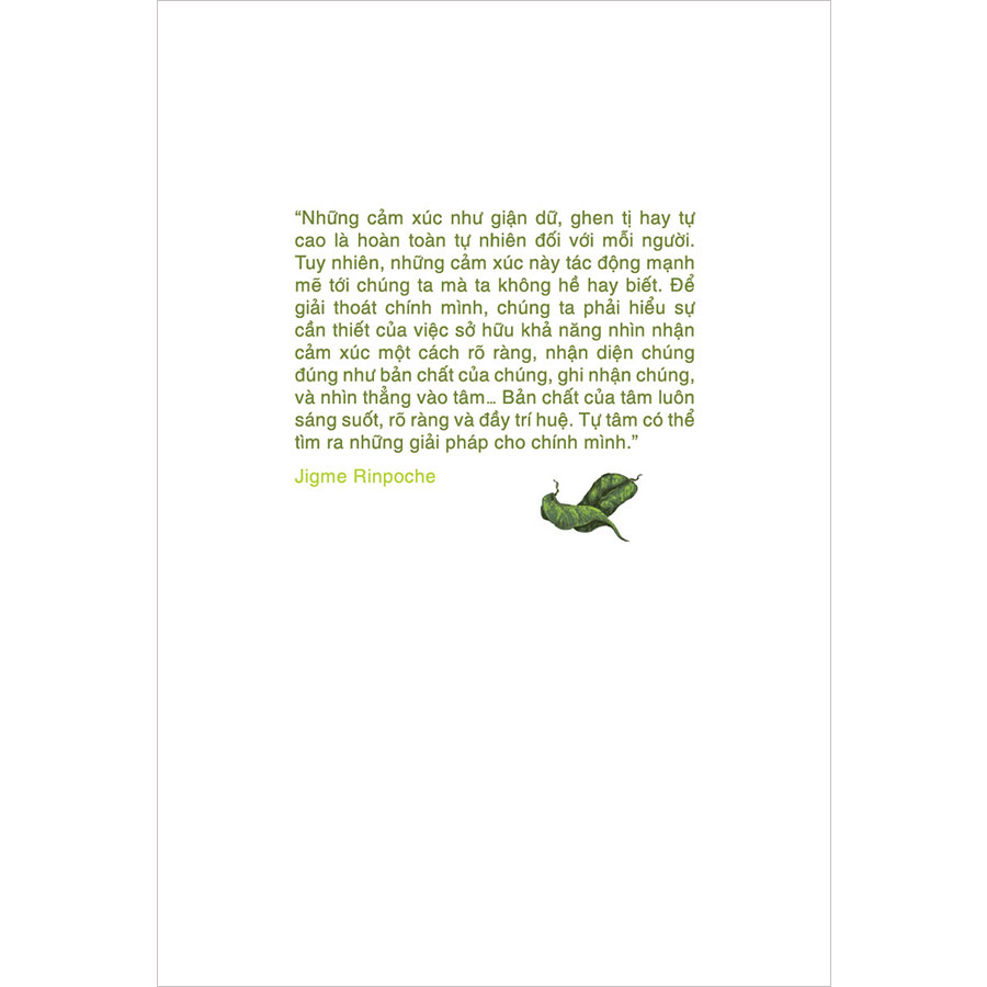 Những cảm xúc như giận dữ, ghen tị hay tự cao là hoàn toàn tự nhiên đối với mỗi người. Tuy nhiên, những cảm xúc này tác động mạnh mẽ tới chúng ta mà ta không hề hay biết. Để giải thoát chính mình, chúng ta phải hiểu sự cần thiết của việc sở hữu khả năng nhìn nhận cảm xúc một cách rõ ràng, nhận diện chúng đúng như bản chất của chúng, ghi nhận chúng, và nhìn thẳng vào tâm... Bản chất của tâm luôn sáng suốt, rõ ràng và đầy trí huệ. Tự tâm có thể tìm ra những giải pháp cho chính mình.