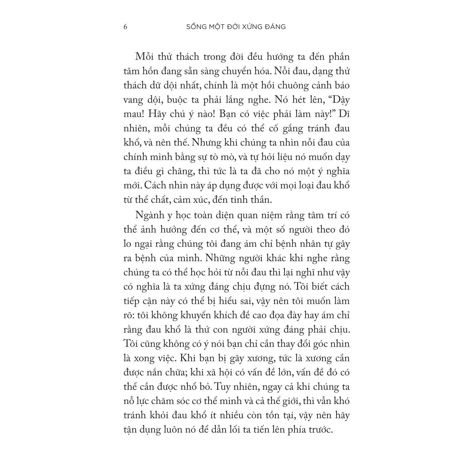 Đúc kết từ hơn một thế kỷ sống và cống hiến cho y học, “Sống một đời xứng đáng” là sáu bí quyết đơn giản của vị bác sĩ 102 tuổi Gladys McGarey, giúp bạn đọc khơi dậy nguồn năng lượng sống, nắm rõ quy luật vận hành của sức khỏe và an vui, để tự chữa lành thể chất và tinh thần bằng tình yêu thương luôn hiện hữu quanh mình.
