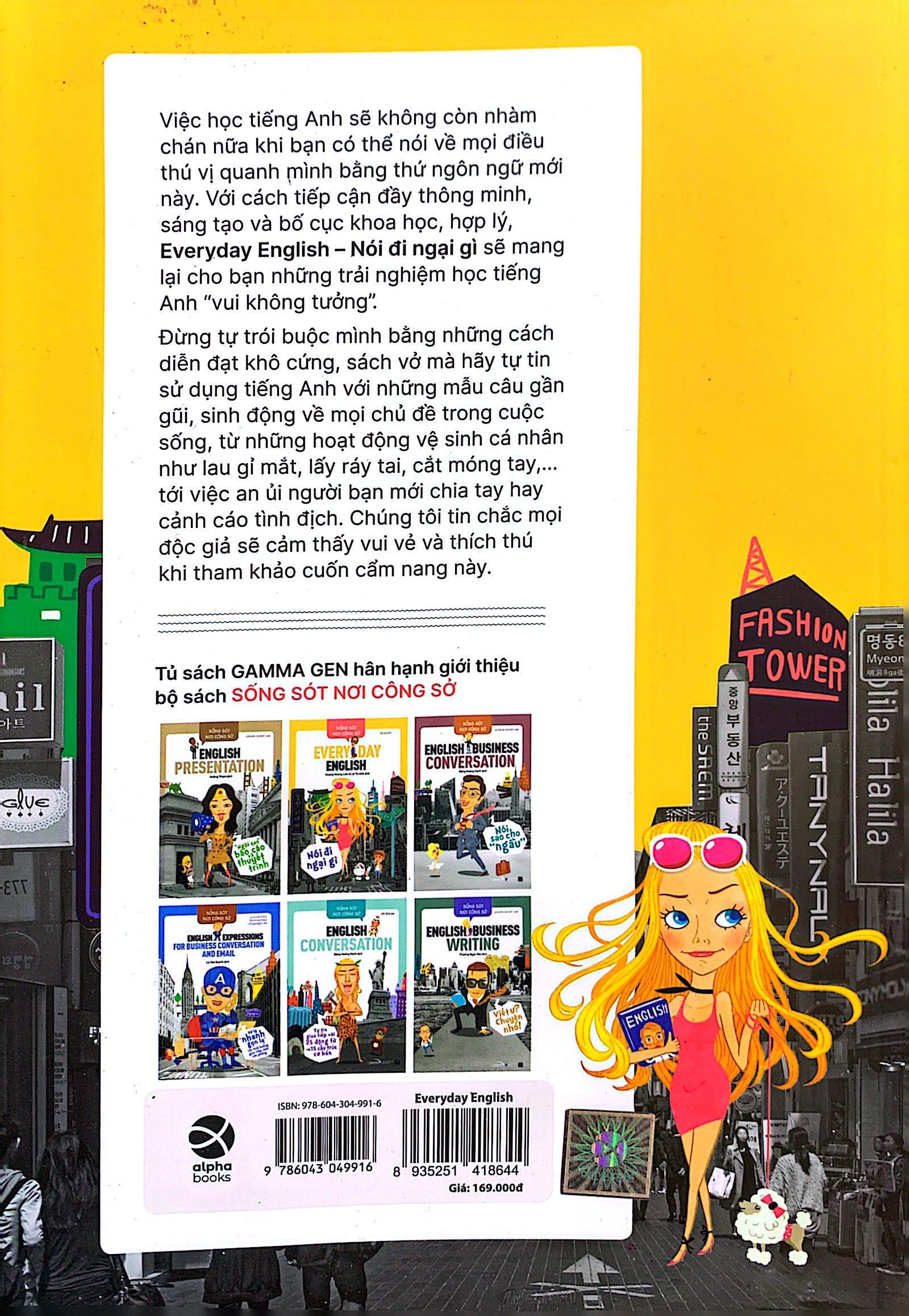 Sống Sót Nơi Công Sở Everyday English - Nói Đi Ngại Gì Everyday English cung cấp các câu thông dụng tương ứng với các chủ đề khác nhau. Phần chuẩn bị đưa ra 6-7 bức ảnh sinh động minh họa cho từ/cụm từ cần học, khiến việc ghi nhớ trở nên dễ dàng hơn. Phần hội thoại/văn bản mẫu được sắp đặt hợp lý, giúp người học hình dung sẽ áp dụng các câu mẫu vào cuộc sống thường ngày như thế nào. Phần tổng hợp sẽ hệ thống lại toàn bộ các câu mẫu đã học, giúp người học dễ dàng tra cứu và luyện tập Ưu điểm nổi bật: