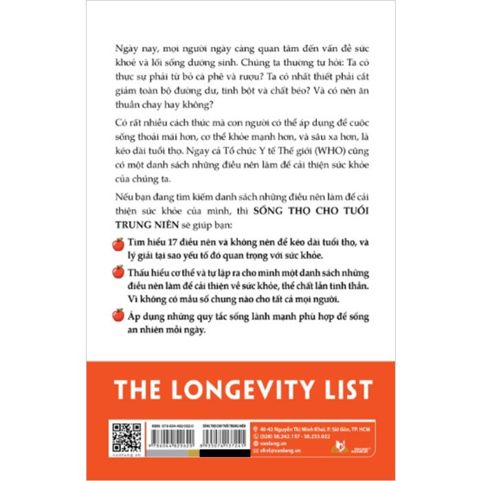 Sống Thọ Cho Tuổi Trung Niên Trong nhịp sống hiện đại, ai cũng quan tâm đến sức khỏe và lối sống lành mạnh. Nhưng liệu ta có thực sự cần từ bỏ cà phê, rượu, cắt toàn bộ đường, tinh bột, chất béo hay ăn thuần chay mới sống khỏe, sống lâu? Sống Thọ Cho Tuổi Trung Niên của Giáo sư Merlin Thomas mang đến cái nhìn khoa học, rõ ràng và dễ áp dụng để mỗi người có thể tìm ra lối sống phù hợp. Sách giúp bạn hiểu rõ điều gì nên làm và không nên làm để cải thiện sức khỏe, kéo dài tuổi thọ mà vẫn duy trì cuộc sống thoải mái và an nhiên. Nội dung nổi bật