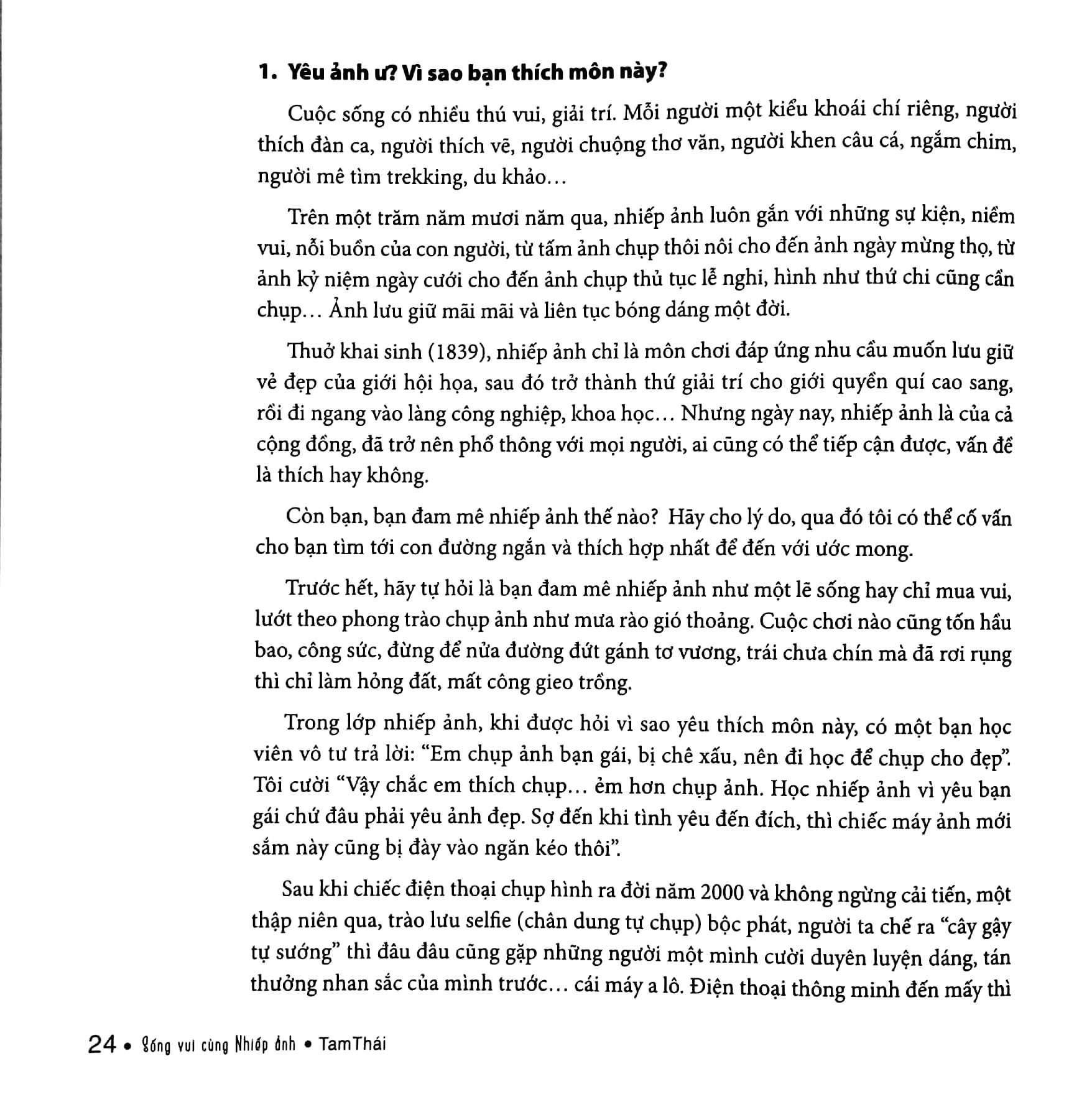 Sống Vui Cùng Nhiếp Ảnh Đây là cuốn sách dành cho nhiều người, Tam Thái là người chụp ảnh có tước hiệu cao nhất của Hội nghệ sĩ Nhiếp ảnh tại Việt Nam, trực tiếp