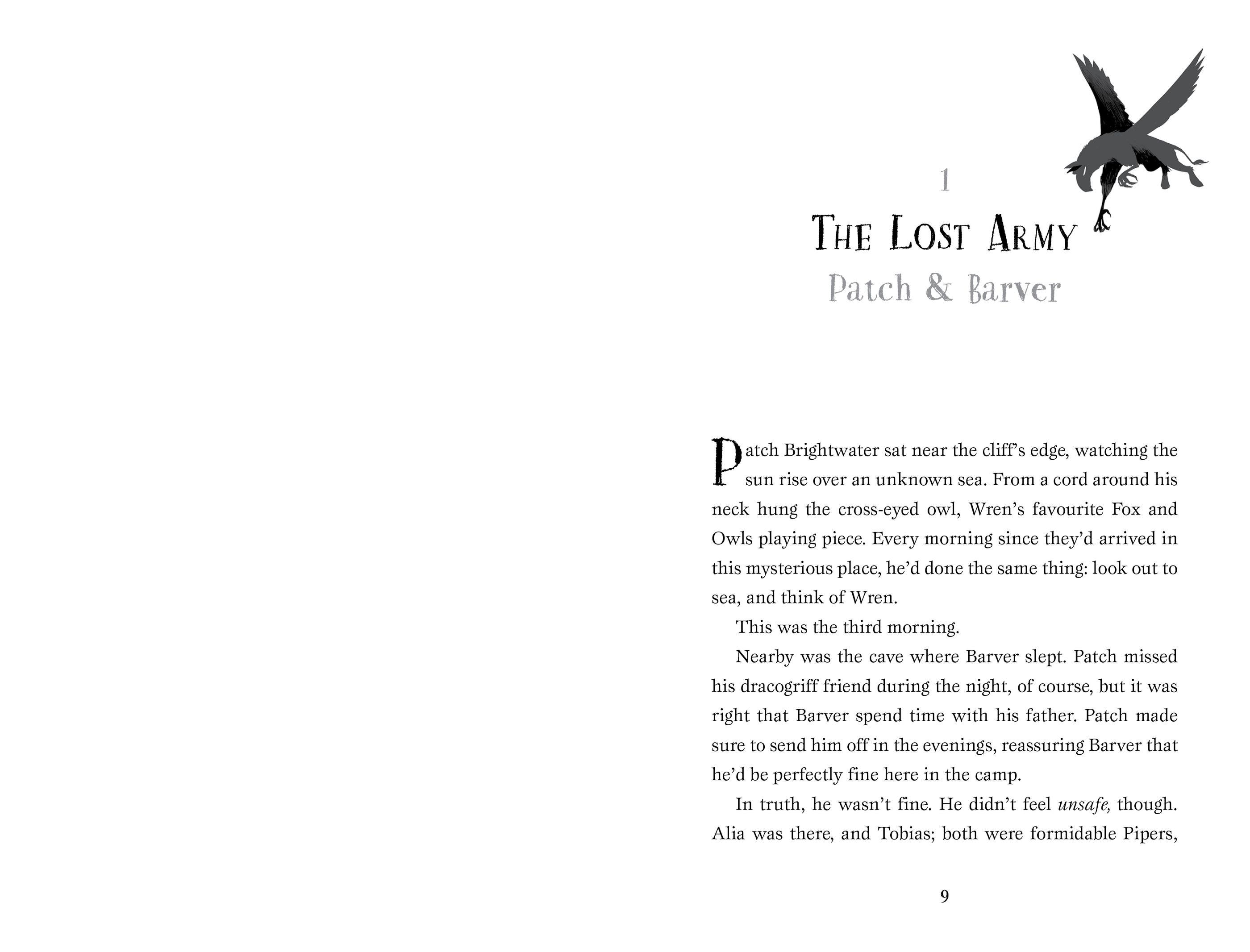 Patch Brightwater and his friend Barver, the dracogriff, are trapped on a mysterious island full of monstrous beasts. Their shapeshifting friend, Wren, is being held prisoner by the Piper of Hamelyn, but she's working hard to escape. Clad in his suit of magical black armour and with dragons and a growing army on his side, the Piper of Hamelyn seems destined to bring chaos and destruction down on the world. Can anything stop him?