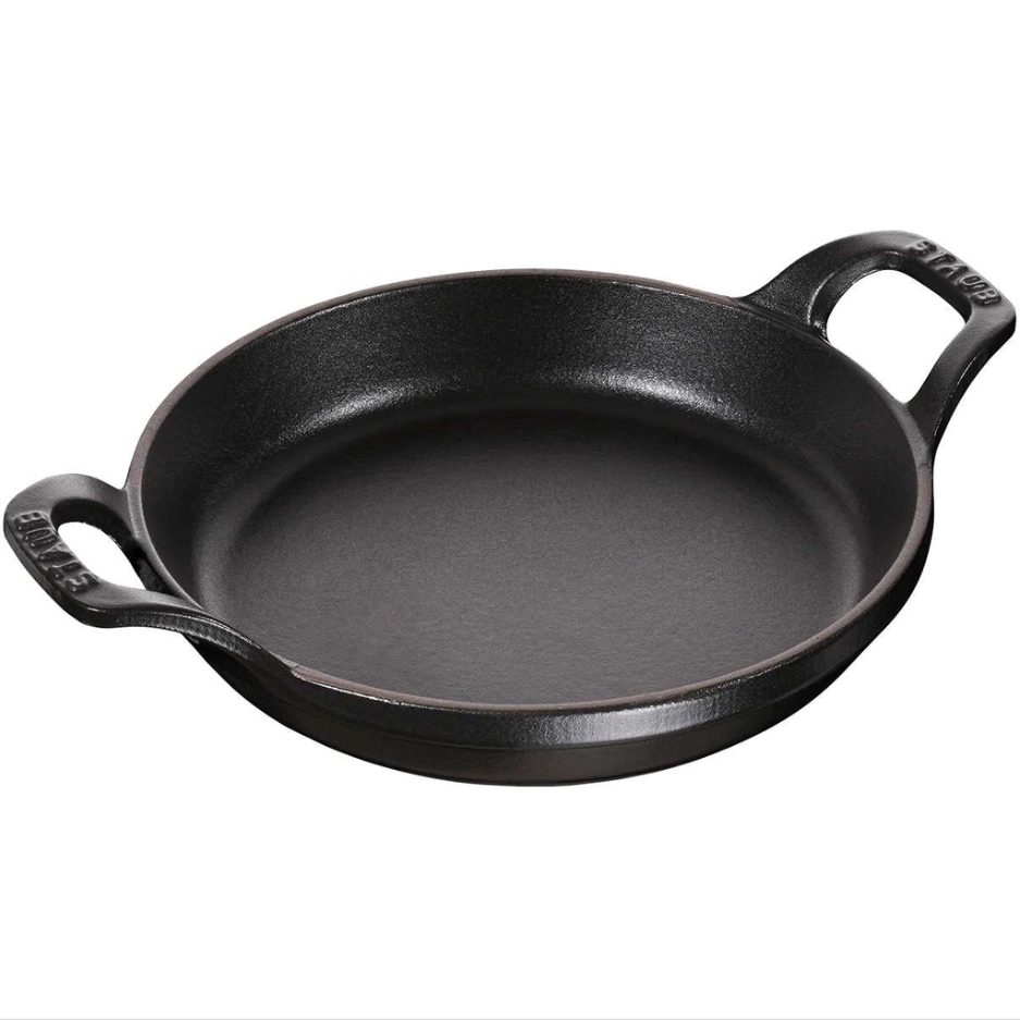 Mua tại TiktokKhay gang Staub được sản xuất hoàn toàn tại Pháp, nổi bật với thiết kế đơn giản, thích hợp để nướng bánh, các món áp chảo hoặc để trưng bày trên bàn tiệc.