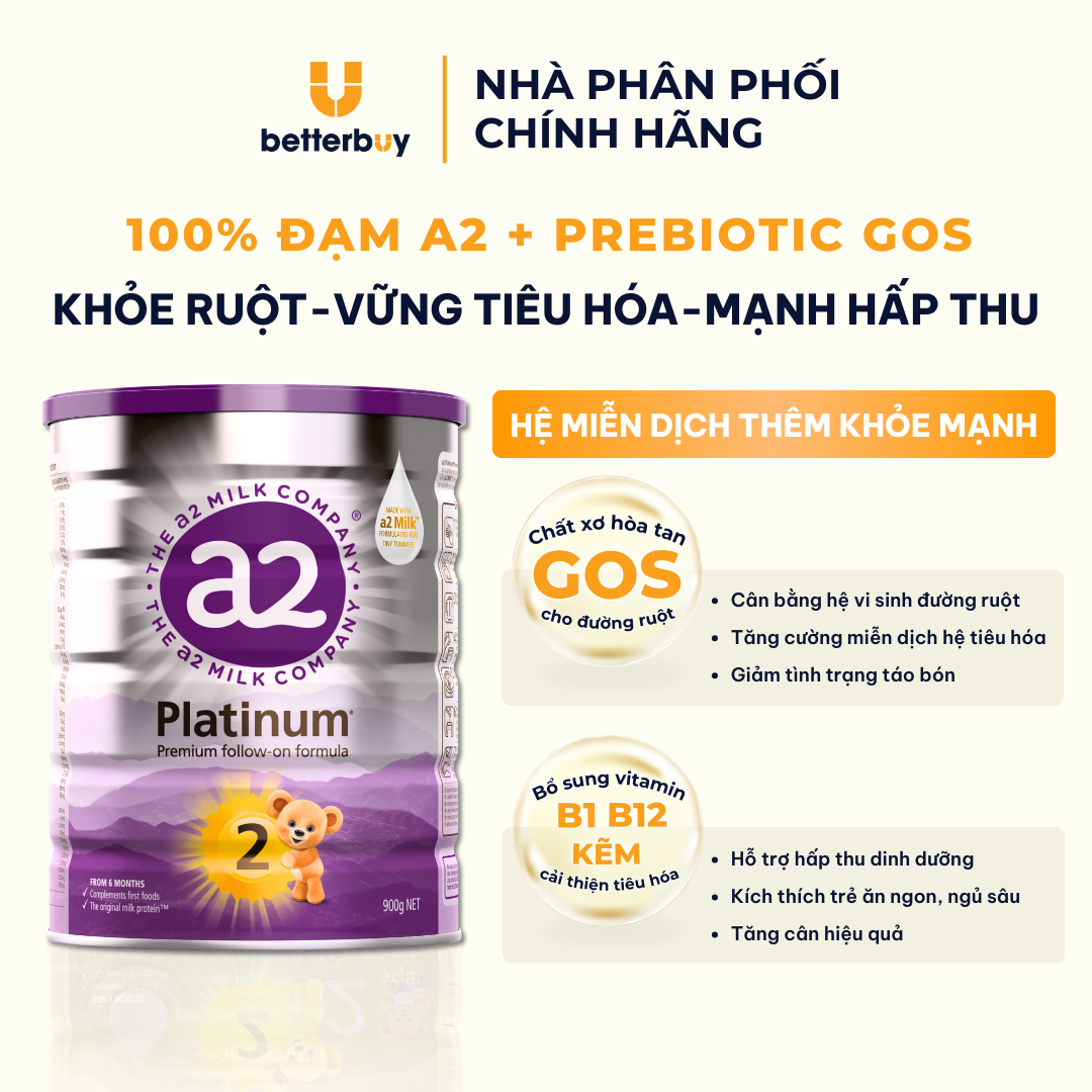 a2 Platinum Premium - Sữa công thức cao cấp nhập khẩu trực tiếp từ New Zealand, 100% đạm A2 chuyên hỗ trợ tiêu hóa và phát triển toàn diện cho trẻ từ 6-12 tháng.