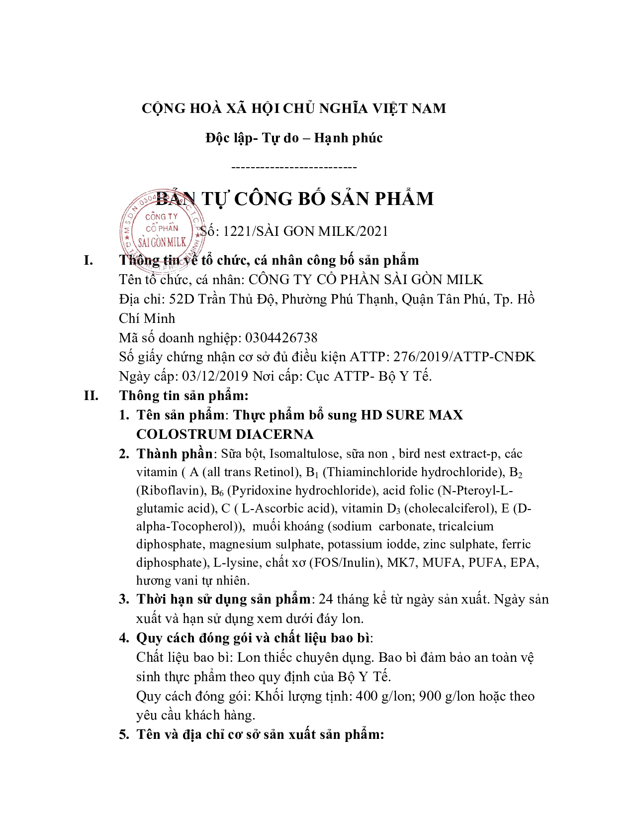 ✨Sữa Bột HD – Sure Max – Colostrum Diacerna hỗ trợ sức khỏe cho người lớn - lon 900g