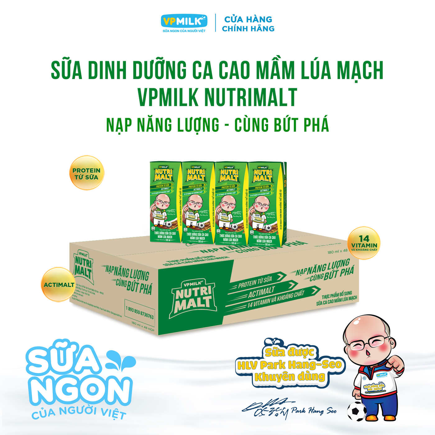 ✨Sữa Ca Cao Mầm Lúa Mạch Đen – VPMilk Nutrimalt 180ml (Thùng 48 Hộp)