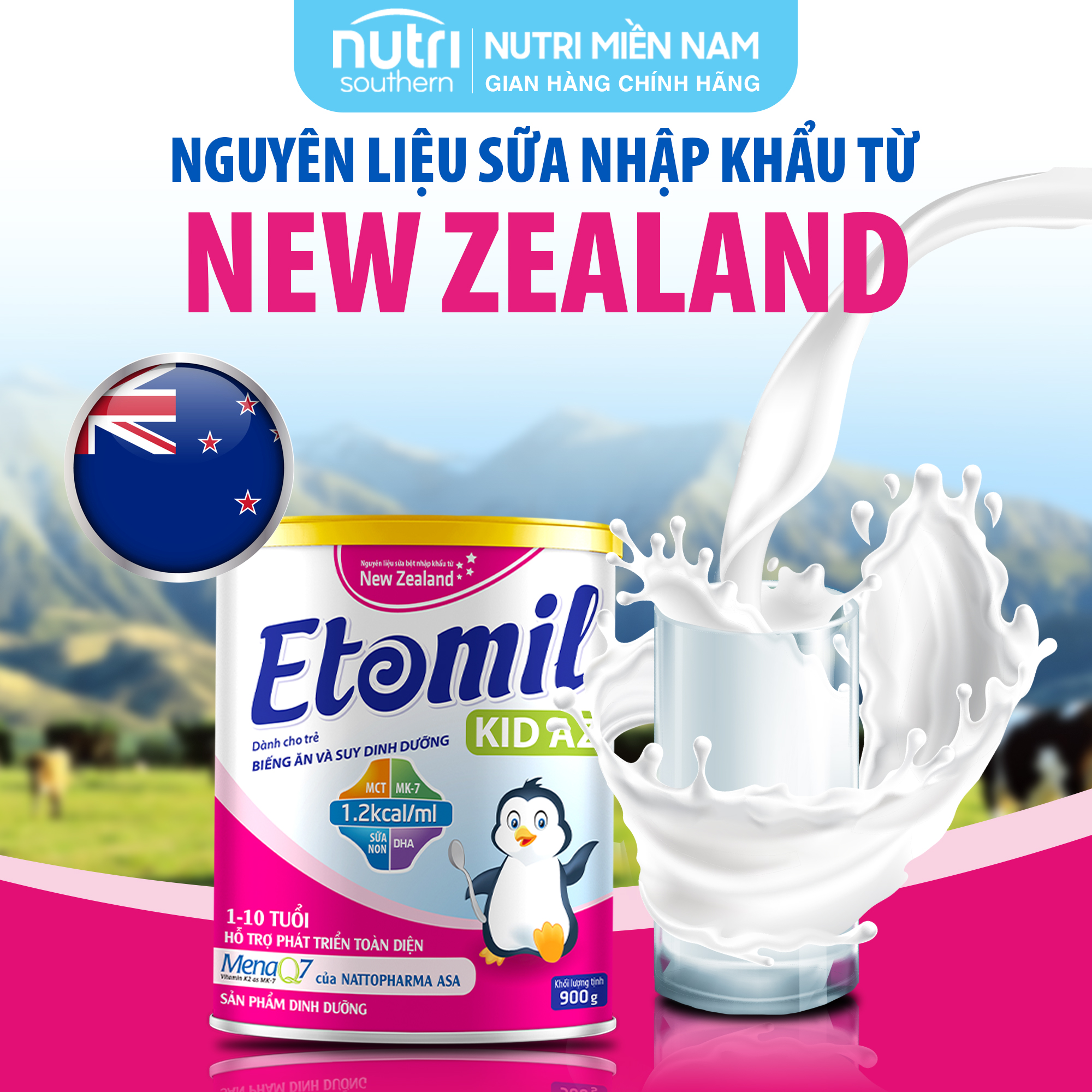 -Trong sản phẩm Etomil những nguyên liệu sữa và các vitamin, khoáng chất được lựa chọn từ các nhà cung ứng hàng đầu và có uy tín lâu năm trên thế giới từ New Zealand, Na uy và Mỹ.