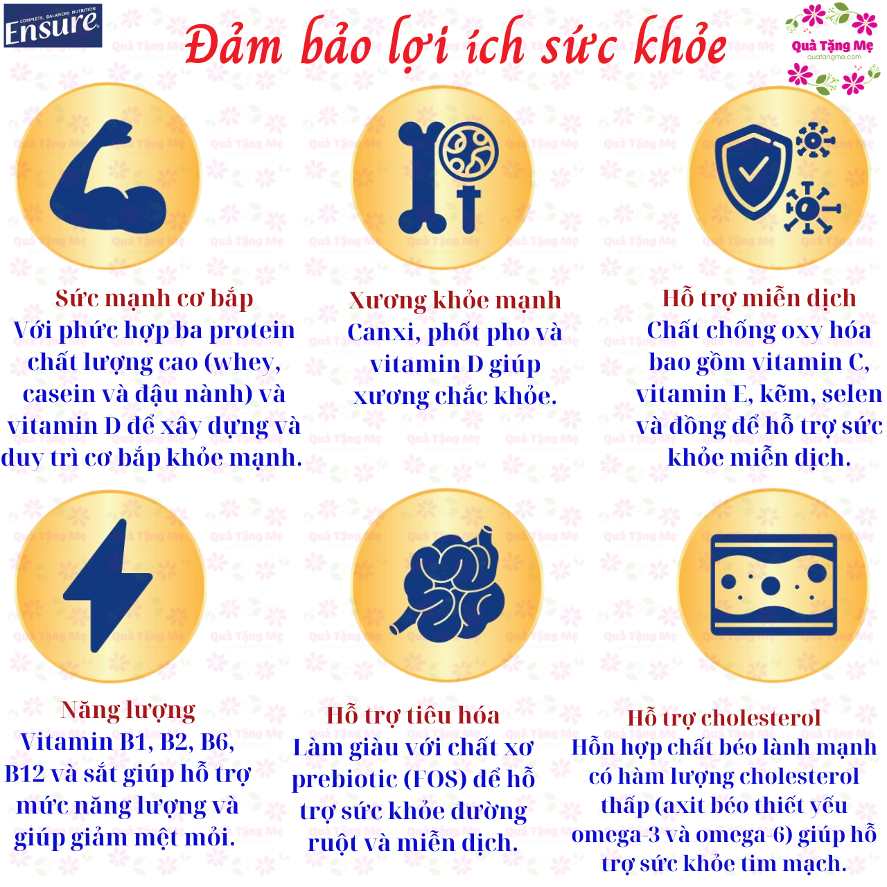- Sử dụng sữa Ensure Úc đều đặn giúp cơ thể nhận đủ các vi chất cần thiết, cải thiện sức khỏe và chất lượng cuộc sống.