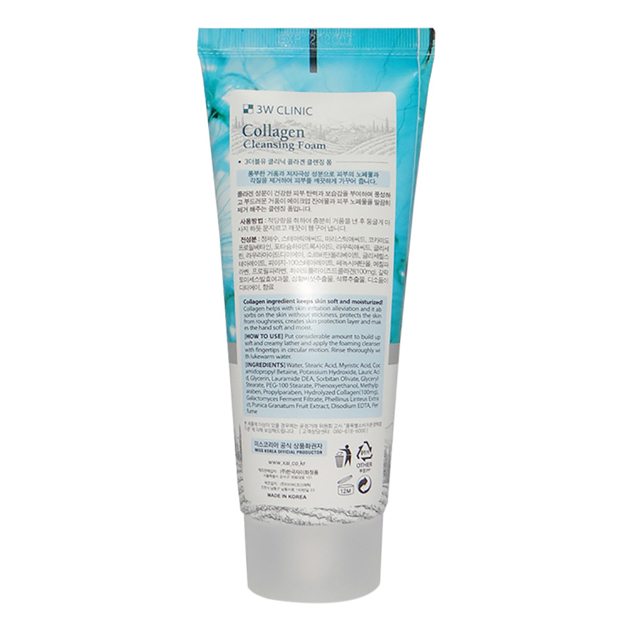 - Sữa Rửa Mặt Collagen 3W Clinic giúp đánh bay bụi bẩn và vi khuẩn sâu trong lỗ chân lông nhưng không làm giãn mà thúc đẩy hình thành tế bào da giúp se khít các