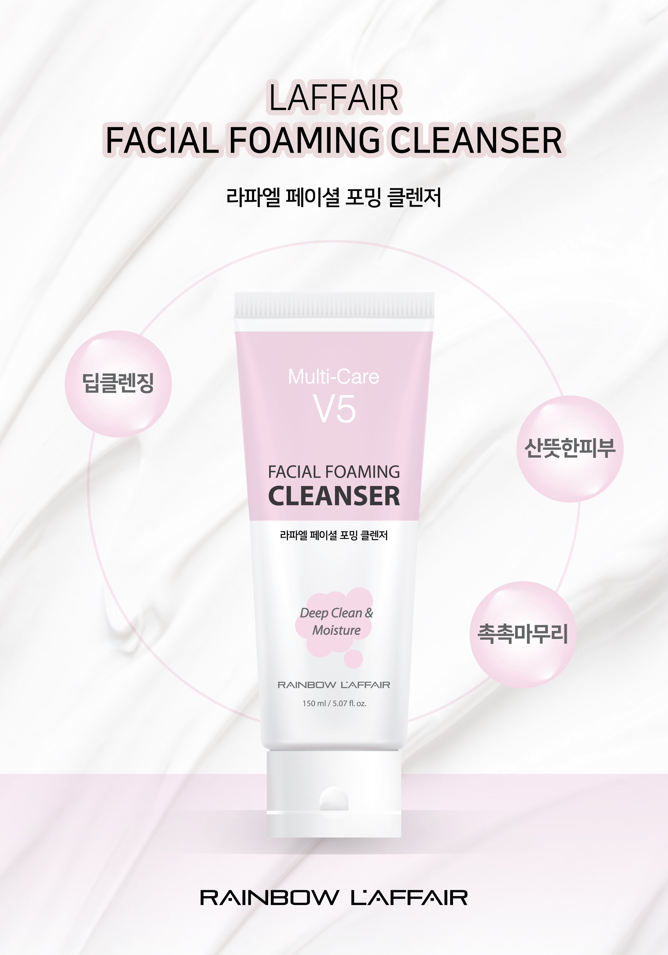 Mua tại TiktokSữa rửa mặt tạo bọt dịu nhẹ, kiềm dầu, cân bằng độ ẩm, ngừa mụn Rainbow L'affair Multi-Care V5 Facial Foaming Cleanser 150ml