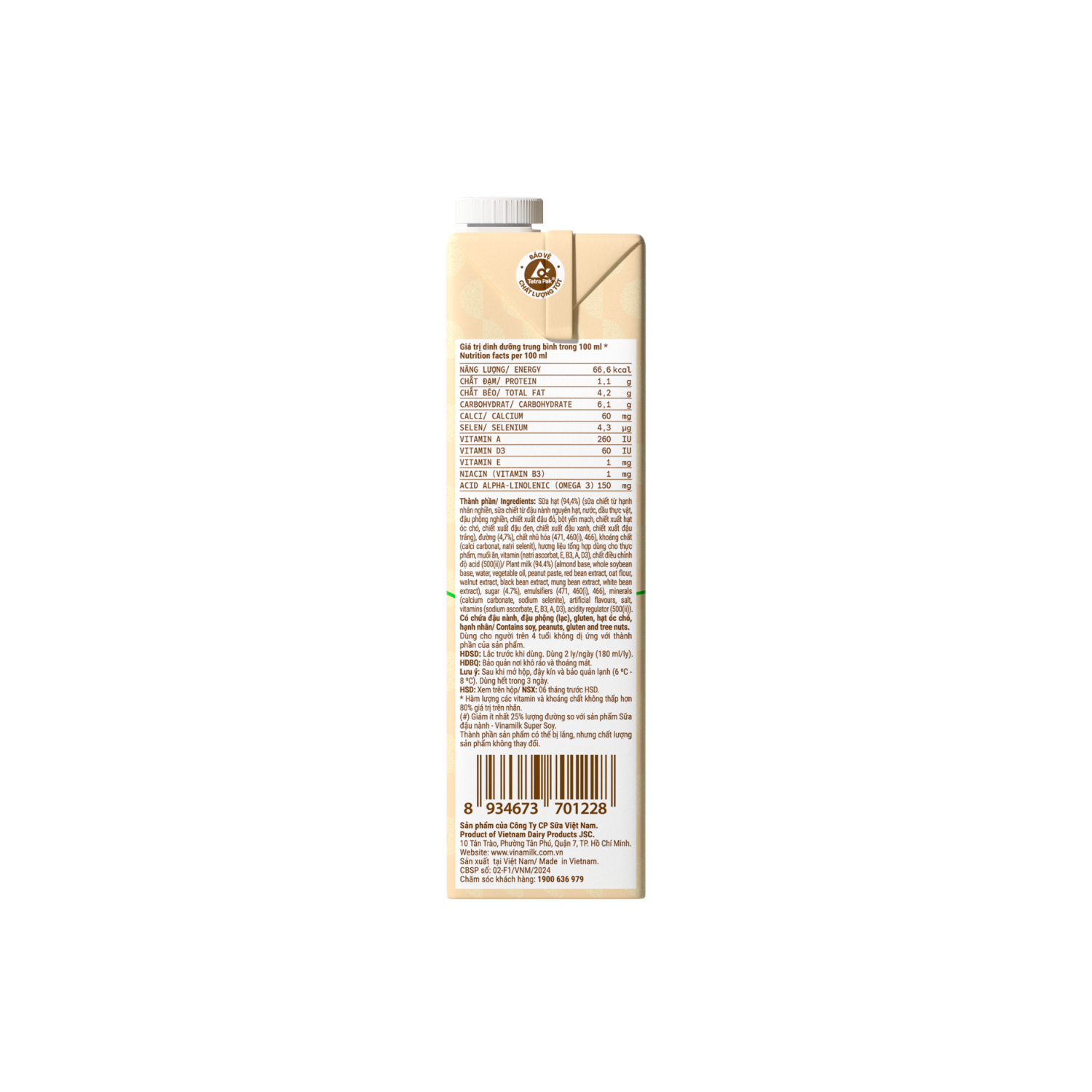 - Super Nut với hàm lượng sữa hạt 94% cung cấp Omega-3, chất xơ cùng nhiều vitamin tốt cho trí não, vóc dáng và làn da. MẪU BAO BÌ THAY ĐỔI THEO TỪNG ĐỢT NHẬP HÀNG. Sữa 9 loại hạt Vinamilk Super Nut: