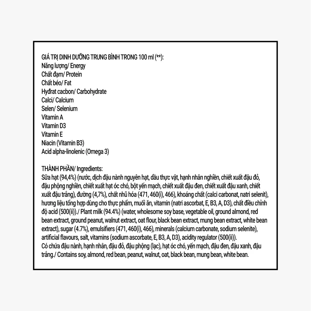 Sữa hạt Cao đạm không đậu nành đầu tiên tại Việt Nam, vị ngon độc bản từ 7 loại hạt cao cấp (óc chó, hạnh nhân, đậu hà lan, đậu phộng, đậu xanh, đậu trắng,