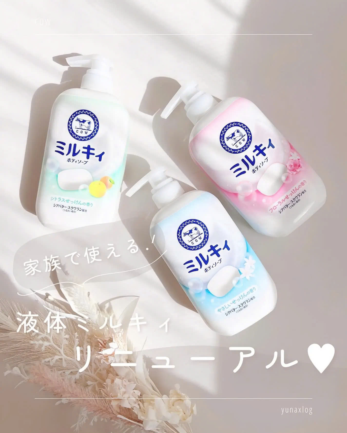 Sữa tắm Tạo Bọt chiết xuất từ SỮA BÒ TƯƠI TÁCH BÉO VÀ VÁNG SỮA được thu hoạch trong các nông trại tại Nhật. Trong váng sữa và sữa tách béo có chứa Axit Lactic, Các Enzim, Protein Và Rất Nhiều Vitamin A, B12... có tác dụng cực kì hiệu quả trong việc dưỡng sáng da và cải thiện các vấn đề về da như: sạm màu, vết thâm, mụn.. *HƯƠNG THƠM HOA CỎ VÀ SỮA BÒ DỊU NHẸ lưu giữ suốt cả ngày.