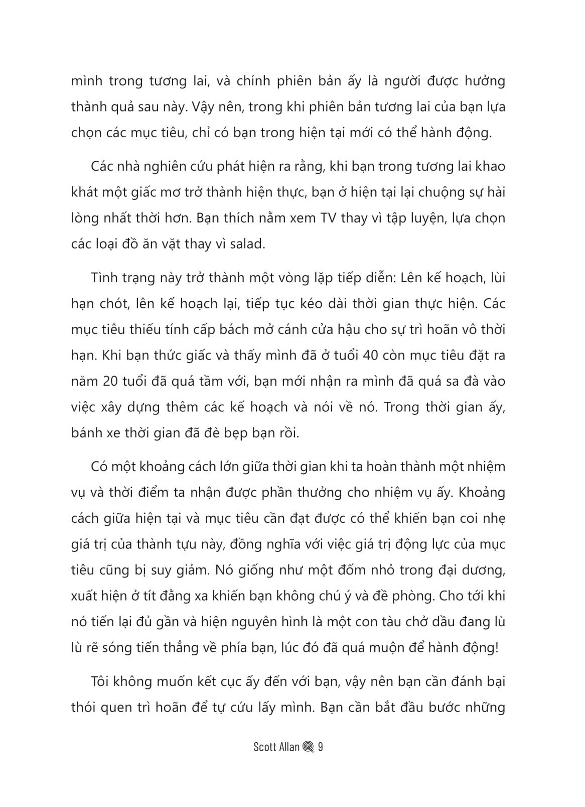Việc hôm nay chớ để ngày mai. Nếu sự trì hoãn – thói quen để lại những việc đòi hỏi sự quan tâm ngay lập tức – đang tác động tiêu cực lên cuộc sống của bạn, cuốn sách này sẽ dẫn lối cho bạn vượt qua thói quen ấy và giành lại cuộc đời m.ình, theo cách chậm nhưng chắc.