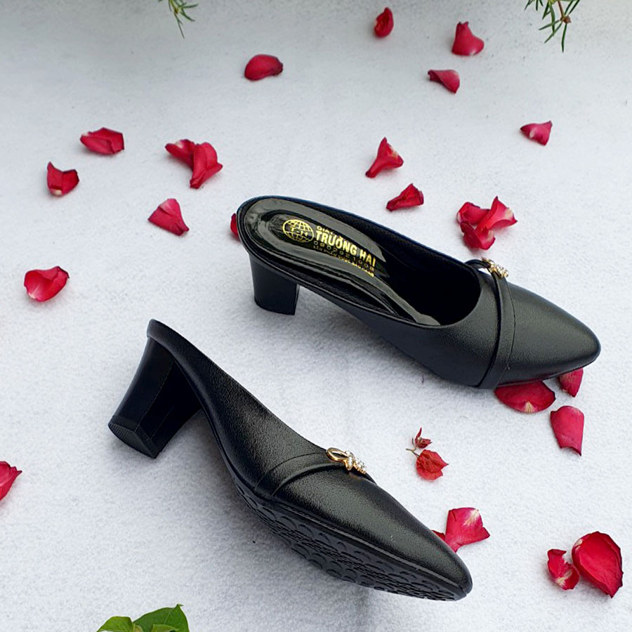 Mua tại Tiktok- Sục nữ cao gót 5cm da mềm màu Đen Trường Hải SCG110Đ CÓ SIZE LỚN được sản xuất tại Việt Nam được thiết kế đơn giản