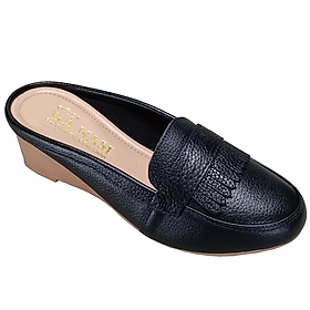 Giày Sục Nữ Giày Đế Xuồng Da Bò Thật Cực Mềm Gót Cao 5cm Evelynv 5P1316 (Đen)