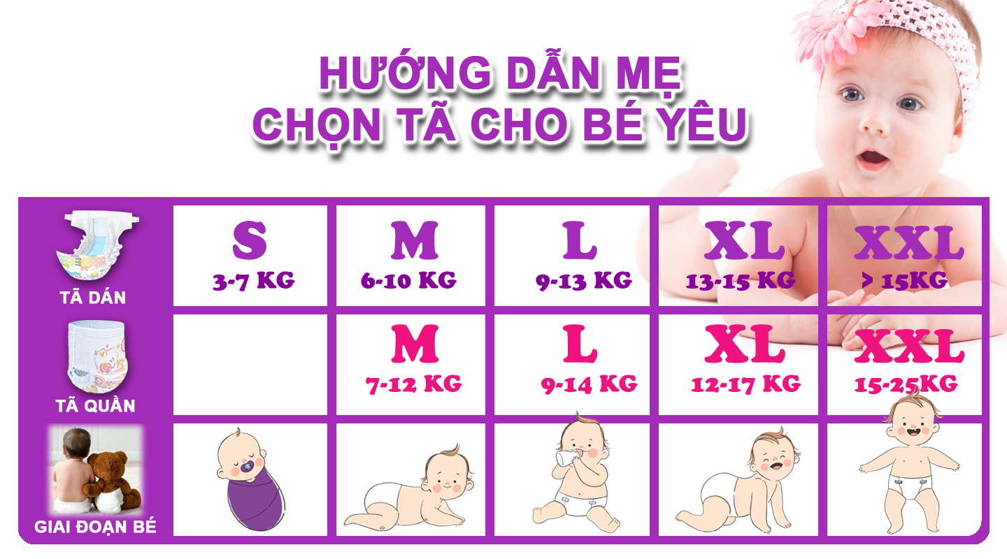 Tã dán Dry-Pro đã và đang trở thành một trong những sự lựa chọn ưu tiên của các bà mẹ Việt bởi những ưu điểm hết sức vượt trội sau: -Khả năng thấm hút cực tốt, nhanh chóng hấp thu và khóa chất lỏng lại, ngăn chất lỏng thấm ngược lại da bé, nhờ đó mà da bé không bị dính với bề mặt tã. Bé vui vẻ suốt cả ngày nhờ Hết hăm tã! -Nguyên liệu cotton thiên nhiên mềm mại, lớp bảo vệ êm mềm như bông bảo vệ làn da nhạy cảm của bé. -Bề mặt tã được thiết kế các hệ thống rãnh để giữ cho bé luôn khô thoáng suốt cả ngày. -Vách ngăn chống tràn 3D bảo đảm chống tràn gấp 3 lần. -Đệm lưng kéo giãn vừa vặn, ôm sát vòng eo nhỏ bé mà luôn làm bé thoải mái. -Miếng dính dai, bền và có thể sử dụng lại nhiều lần, tiết kiệm vô cùng -Đây là sản phẩm mới, đã được cải tiến về bao bì và chất lượng, mẹ mua ngay cho bé để dùng thử và cảm nhận nhé!       Nghiên cứu thị trường và đặc điểm trẻ em châu Á, nhà sản xuất Dry-Pro cung cấp cho người dùng rất nhiều loại bỉm khác nhau phù hợp với độ tuổi, cân nặng và cơ địa bé: -Bỉm dán size S: thấm hút 350ml nước -Bỉm dán size M: thấm hút 520ml nước -Bỉm dán size L: thấm hút 550ml nước -Bỉm dán size XL: thấm hút 600ml nước -Bỉm dán size XXL: thấm hút 750ml nước       Cách chọn size tã dán Dry-Pro cho bé: -Size S: cho bé sơ sinh từ 3-7 ký -Size M: cho bé từ 6-10 ký -Size L: cho bé từ 9-13 ký -Size XL: cho bé từ 13-15 ký -Size XXL: cho bé trên 15 ký   Cách mặc tã cho bé: -Đặt mông bé lên giữa tã -Đặt mặt có phần dán ở phía trước, giữa 2 chân và vòng quanh bụng bé -Mở miếng dán và dán vào phần tã phía trước. Miếng dán có thể dán lại nhiều lần và tháo ra dễ dàng -Nhẹ nhàng kéo phần dây thun quanh chân bé để bé thoải mái hơn và chống tràn -Khi thay tã mở miếng dán ra trước và tháo tã ra khỏi mông của bé     Dry-Pro có dòng tã quần Maxi-Care và tã dán Ultra-Soft, mẹ xem bảng quy đổi sau để kết hợp chọn loại tã phù hợp cho hoạt động cả ngày của bé sao cho bé luôn thoải mái mà lại tiết kiệm (ví dụ mẹ có thể dùng tã quần lúc ban ngày và tã dán trong lúc bé ngủ)   THÔNG TIN THƯƠNG HIỆU: Dry-Pro là thương hiệu tã bỉm em bé chất lượng cao với giá thành hợp lý được ưa chuộng tại thị trường Malaysia và các nước khác trên 19 năm. Dry-Pro đảm bảo đem đến sự chăm sóc chuyên nghiệp cho trẻ sơ sinh và trẻ nhỏ trên khắp thế giới với nhiều loại tã bỉm đa dạng. -Nhập khẩu hoàn toàn từ Malaysia -Nguyên liệu nhập khẩu cao cấp -19 năm trên thị trường -Kỹ thuật tiên tiến Nhật Bản -Chất lượng tiêu chuẩn quốc tế