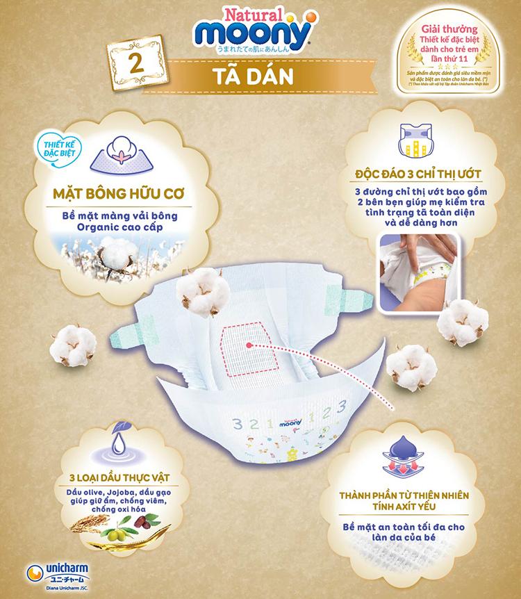 Đặc điểm nổi bật Tã/Bỉm Dán Moony Natural Organic Siêu cao cấp
