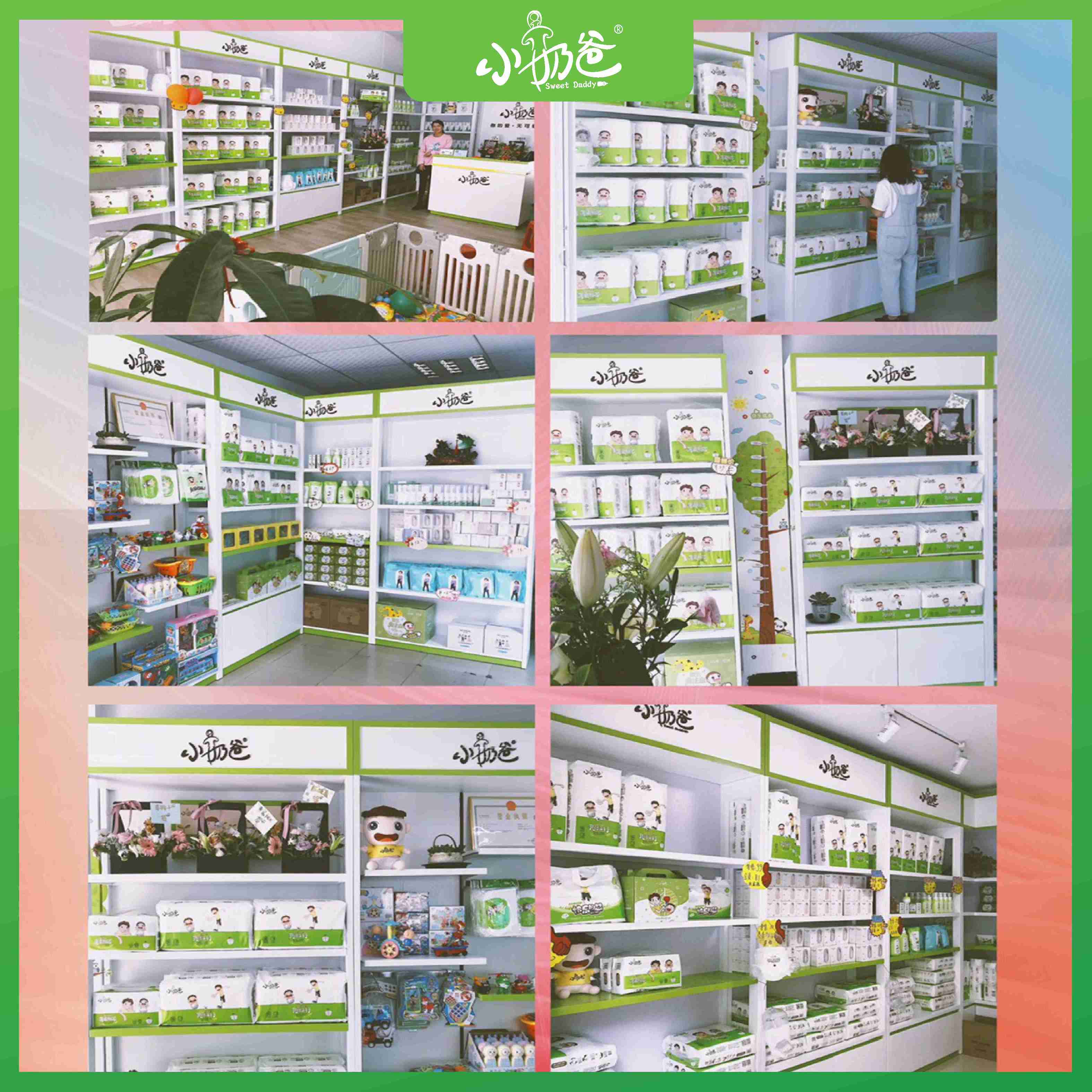 - Sweet Daddy là chuỗi thương hiệu Mẹ&Bé TOP 10 tại Trung Quốc, đã có hơn 1000 cửa hàng khắp đại lục và là nhà máy chuyên nghiên cứu, sản xuất các sản phẩm tã bỉm, khăn vệ sinh, các loại kem dưỡng ẩm, sửa tắm...với mục tiêu không chỉ tiết kiệm tiền cho các bà Mẹ mà còn đồng hành cùng sự phát triển khoẻ mạnh của con.