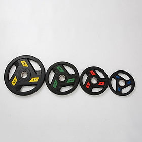 Tạ mỏng cho phép nhiều trọng lượng trên 1 thanh đòn. Màu sắc được mã hóa để xác định trọng lượng nhanh chóng