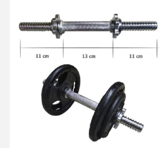 Hai đầu đoạn bỏ tạ dài 11 cm, phần tay nắm 13 cm
