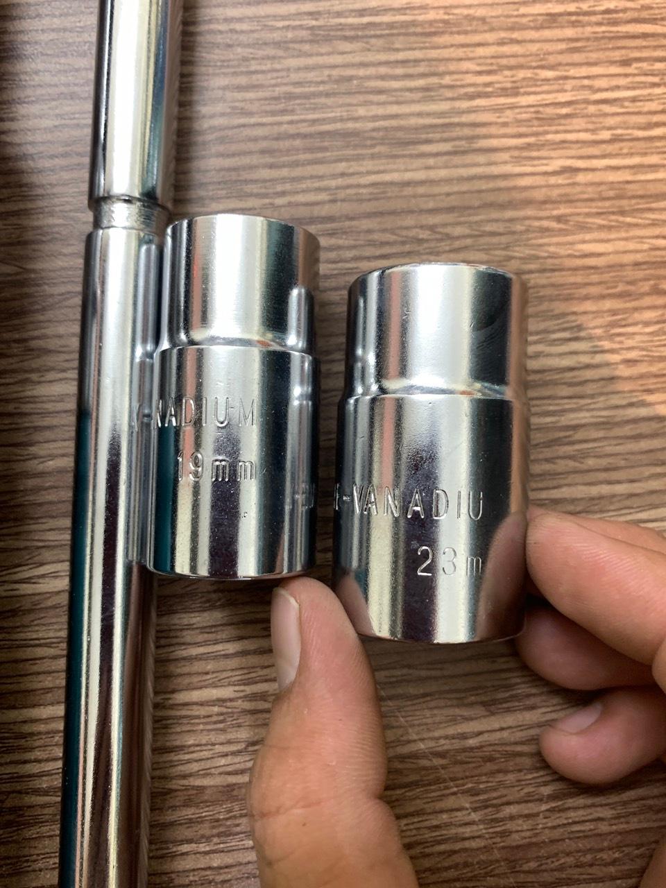 - Vật liệu molypden mạ crôm đen tráng cứng. - Cờ lê ổ cắm cho vít lục giác. - 10, 11,12, 13,14, 15, 16, 17, 19, 21 mm