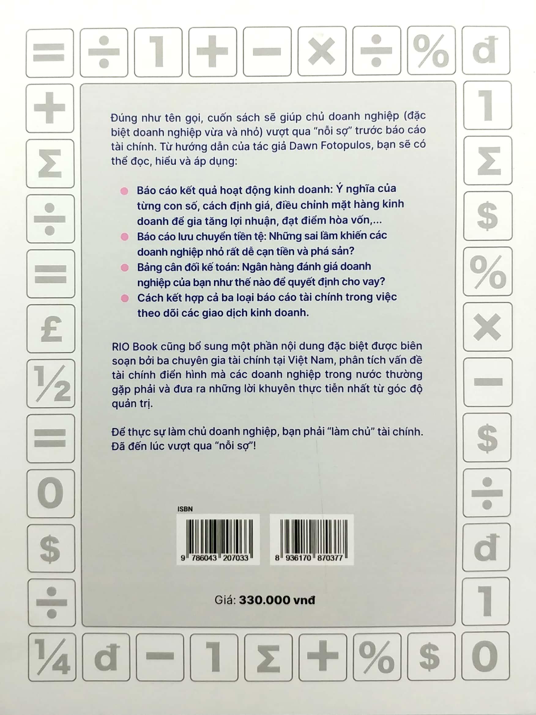 “TÀI CHÍNH DÀNH CHO NGƯỜI SỢ SỐ" là cuốn sách dễ hiểu, mạch lạc và thú vị nhất về tài chính cho các doanh nghiệp vừa và nhỏ. Cuốn sách sẽ giúp bạn đọc hiểu ý nghĩa của các con số trong bảng báo cáo tài chính từ đó nhận ra được chính xác tình hình kinh doanh và đưa ra các quyết định quản lý, điều chỉnh quan trọng đưa doanh nghiệp cải thiện khả năng sinh lời.