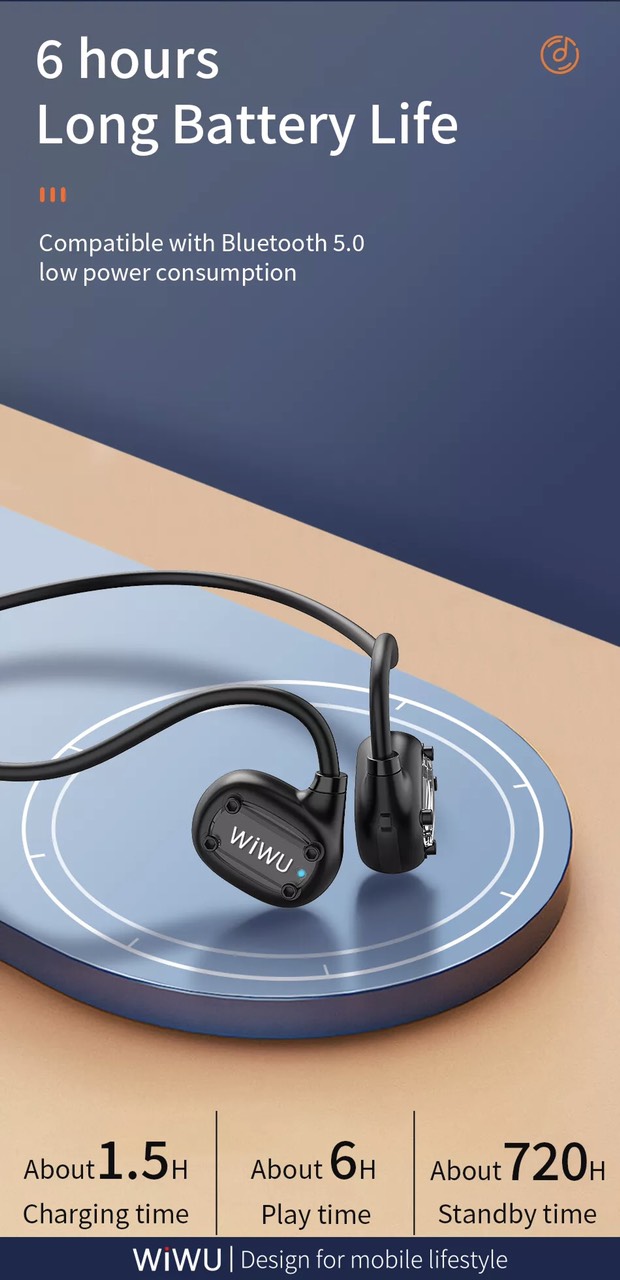 Tai nghe không dây thể thao Wiwu SE Thương hiệu: Mô tả sản phẩm Dung lượng pin: 100mAh Thời gian làm việc : khoảng 6 giờ , tiêu thụ điện năng thấp Tai nghe chỉ