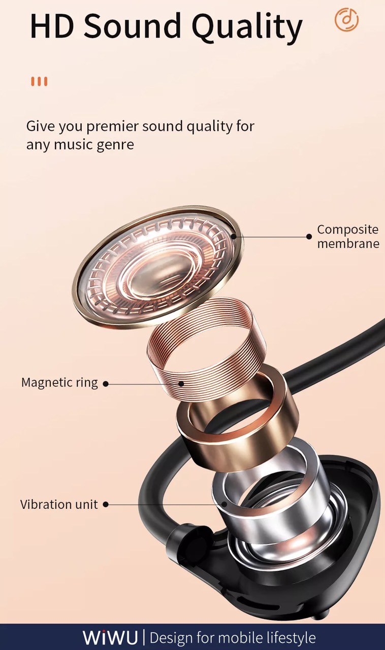 Tai nghe Cobra 2 Thương hiệu: Wiwu Thông tin sản phẩm - Thiết kế tai nghe nước thể thao có độ trễ thấp để chơi game - Tai nghe có chế độ chờ lâu với