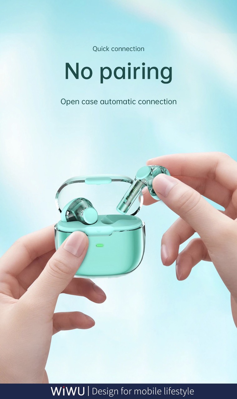 Tai nghe Wiwu ZERO BEANS T15 Thương hiệu: Wiwu Giao diện sạc: Type-C Phiên bản kết nối không dây: 5.3 Khoảng cách truyền: 10m Dung lượng pin tai nghe: 30mAh Thời gian nghe: khoảng 5