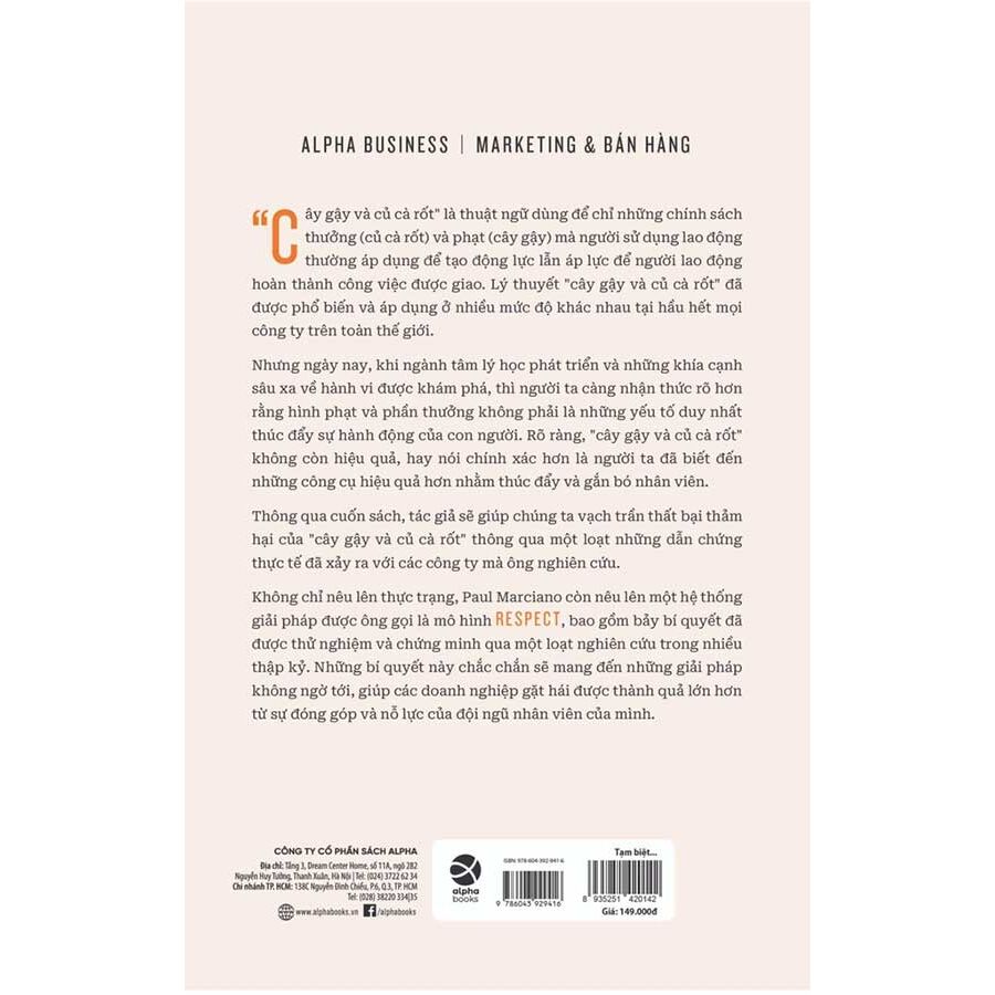 Không chỉ nêu lên thực trạng, Paul Marciano còn nêu lên một hệ thống giải pháp được ông gọi là mô hình RESPECT, bao gồm bảy bí quyết đã được thử nghiệm và chứng minh qua một loạt nghiên cứu trong nhiều thập kỷ. Những bí quyết này chắc chắn sẽ mang đến những giải pháp không ngờ tới, giúp các doanh nghiệp gặt hái được thành quả lớn hơn từ sự đóng góp và nỗ lực của đội ngũ nhân viên của mình.