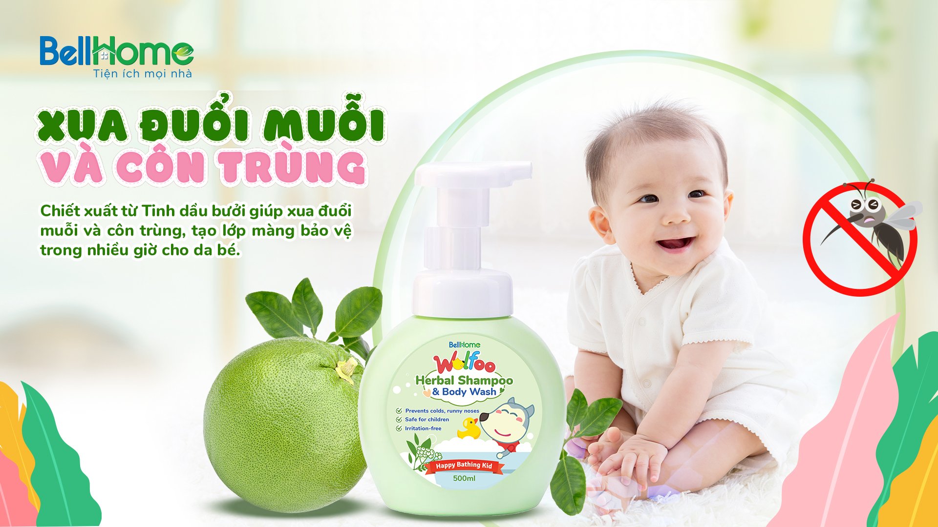 Tắm Gội Thảo Dược Chống Cảm WOLFOO BABY Bell Home Dành Cho Bé Yêu